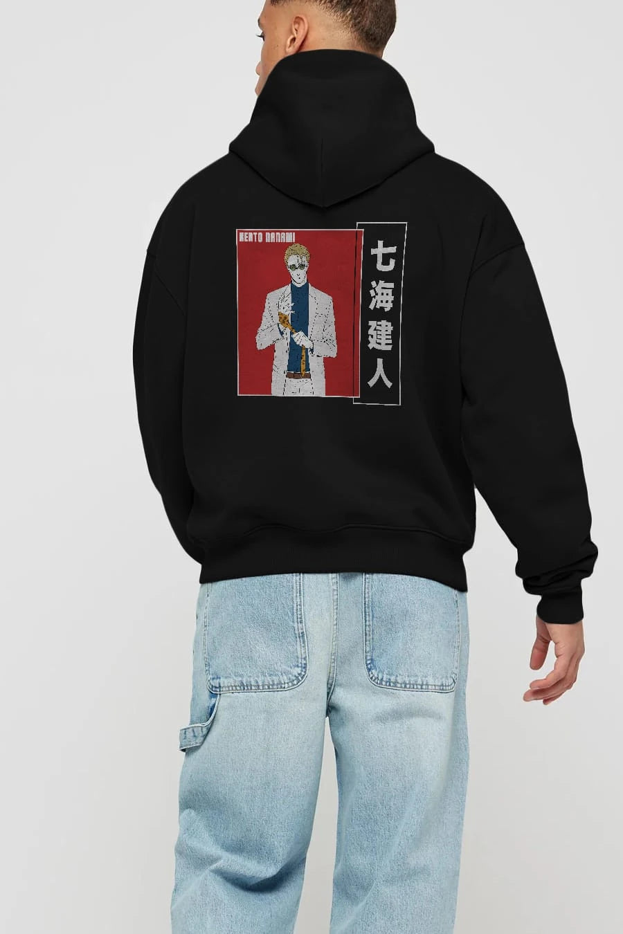 Kento Nanami 1 Anime Arka Baskılı Hoodie Oversize Kapüşonlu Sweatshirt Erkek Kadın Unisex