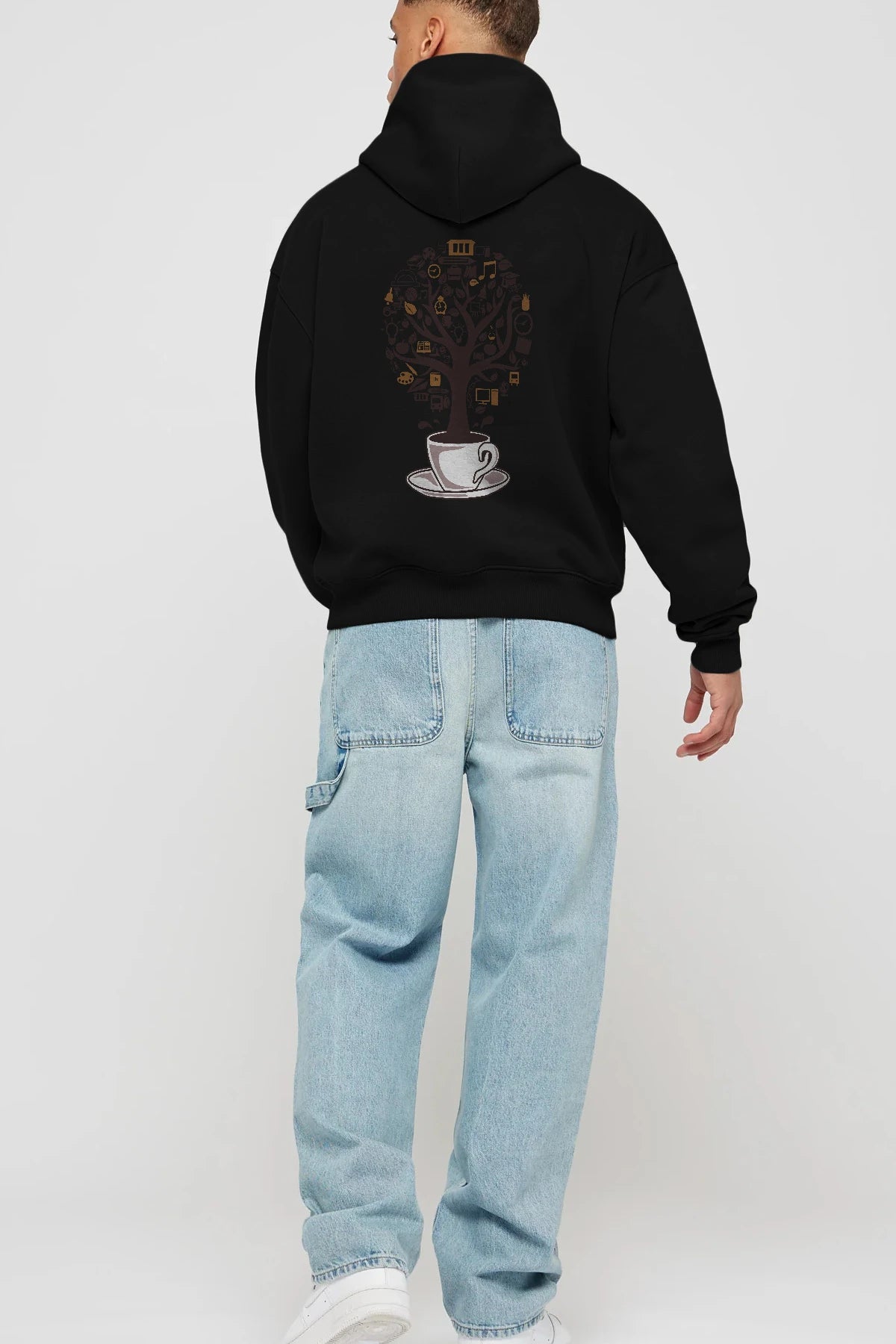 Coffee Tree Arka Baskılı Hoodie Oversize Kapüşonlu Sweatshirt Erkek Kadın Unisex