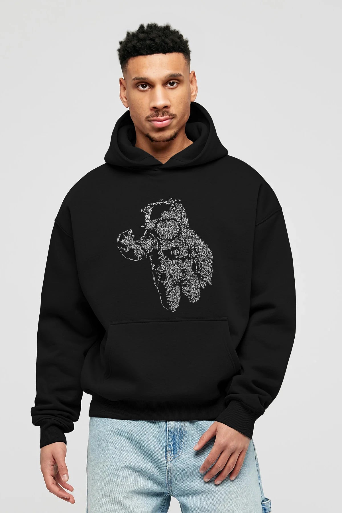 Flying Astronaut Ön Baskılı Hoodie Oversize Kapüşonlu Sweatshirt Erkek Kadın Unisex