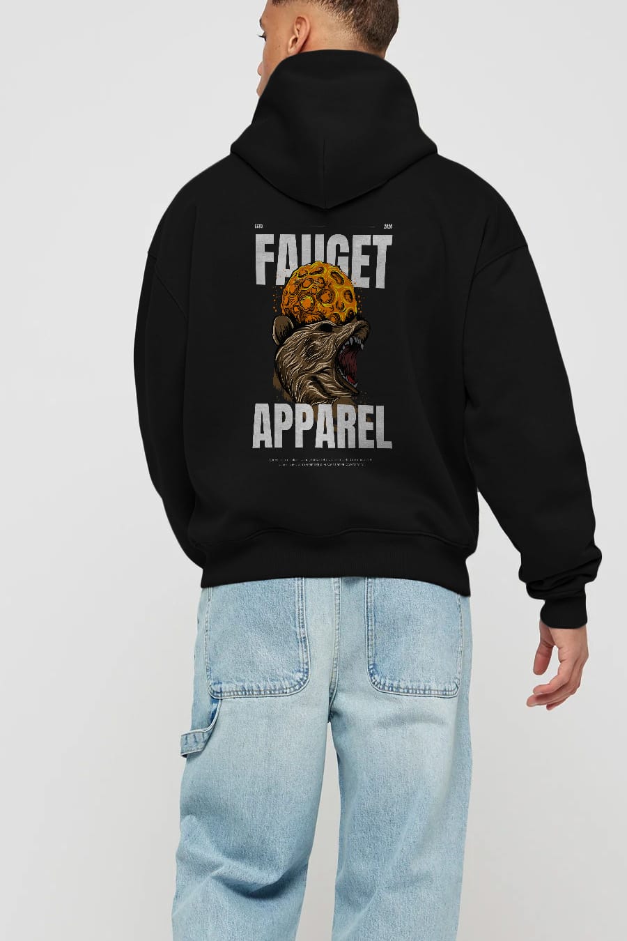 Bear Angry Fauget Apparel Arka Baskılı Oversize Hoodie Kapüşonlu Sweatshirt Erkek Kadın Unisex