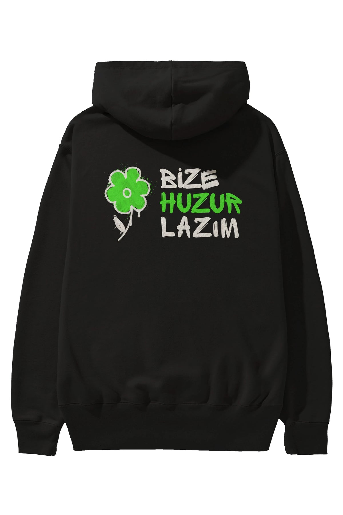 Bize Huzur Lazım Arka Baskılı Oversize Hoodie Kapüşonlu Sweatshirt Erkek Kadın Unisex