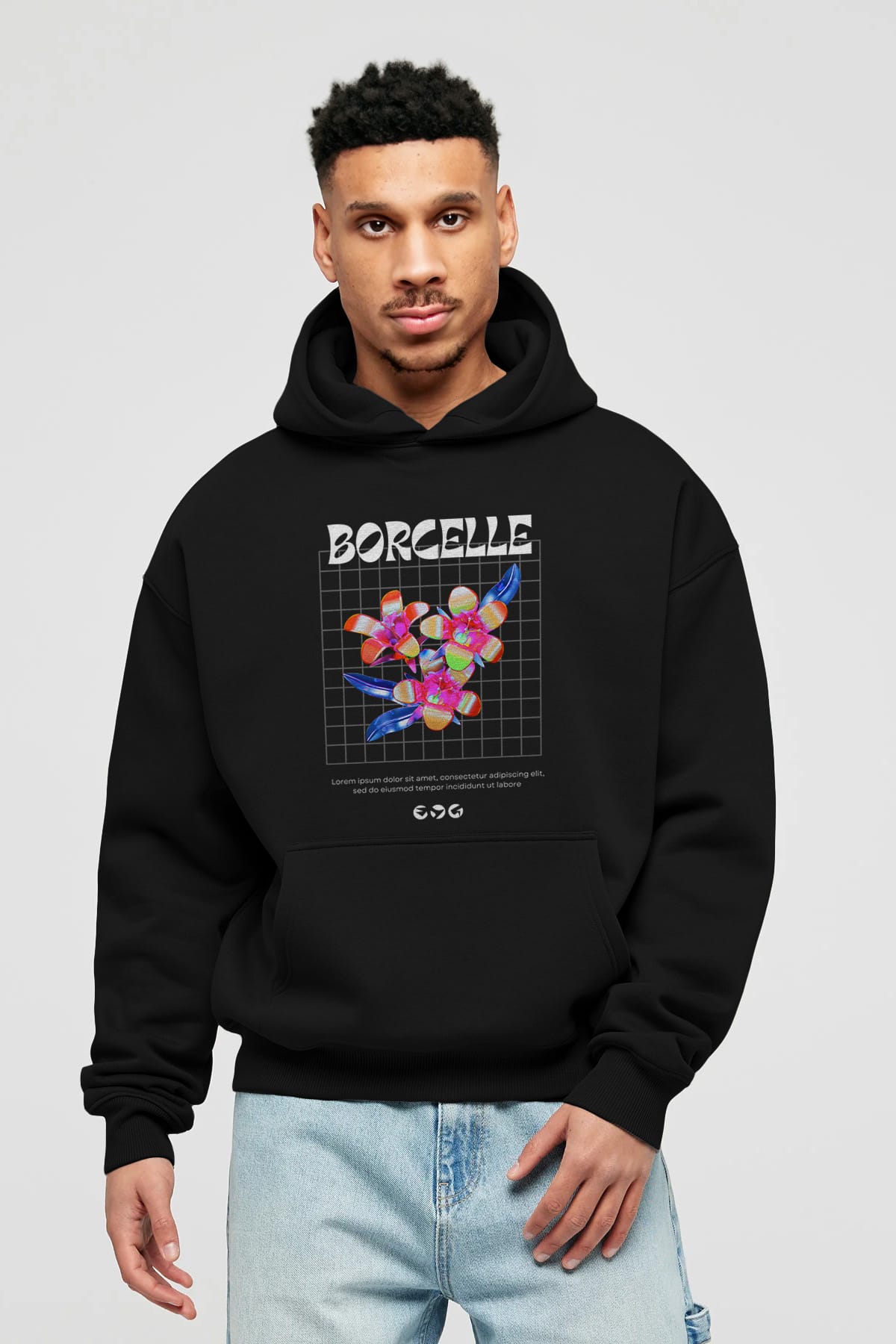Borcelle Streetwear Ön Baskılı Oversize Hoodie Kapüşonlu Sweatshirt Erkek Kadın Unisex