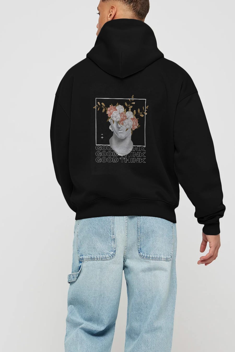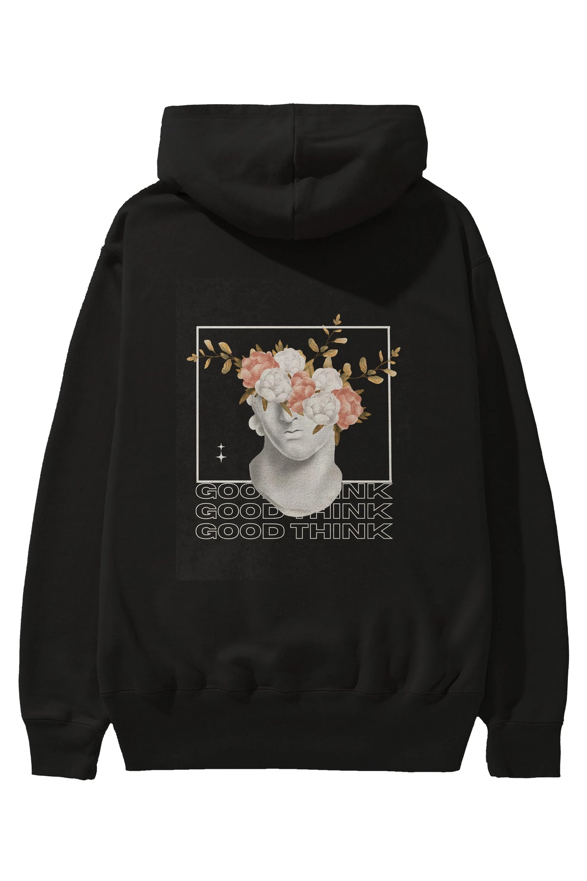 Good Think Yazılı Arka Baskılı Oversize Hoodie Kapüşonlu Sweatshirt Erkek Kadın Unisex