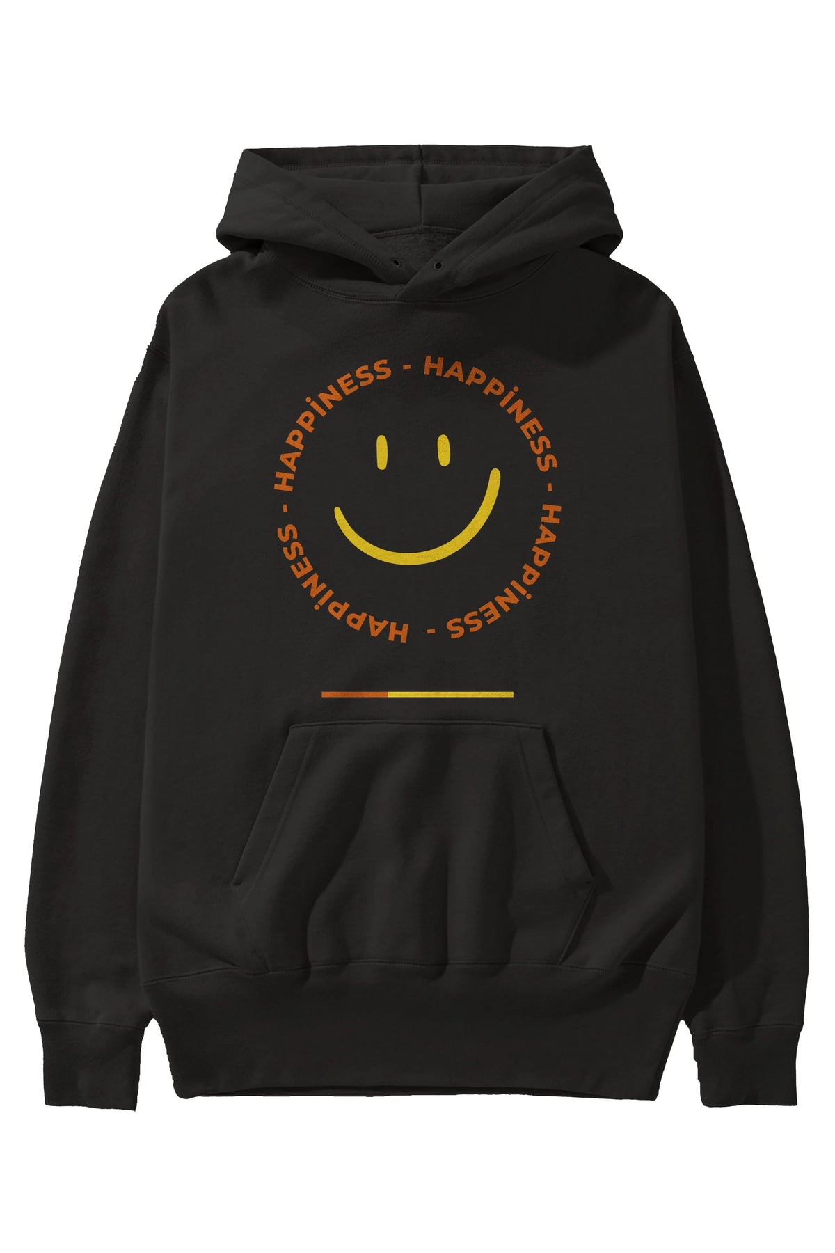 Happiness Smile Yazılı Ön Baskılı Oversize Hoodie Kapüşonlu Sweatshirt Erkek Kadın Unisex