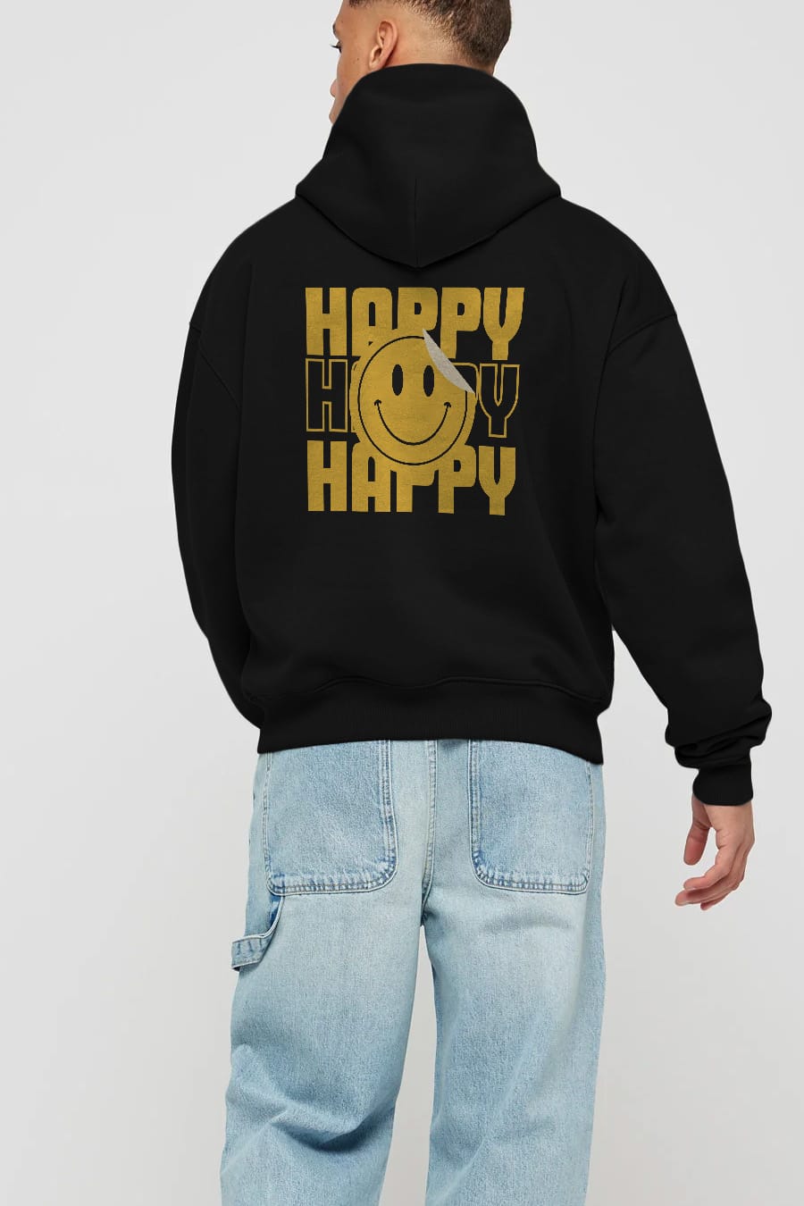 Happy Smile Yazılı Arka Baskılı Oversize Hoodie Kapüşonlu Sweatshirt Erkek Kadın Unisex