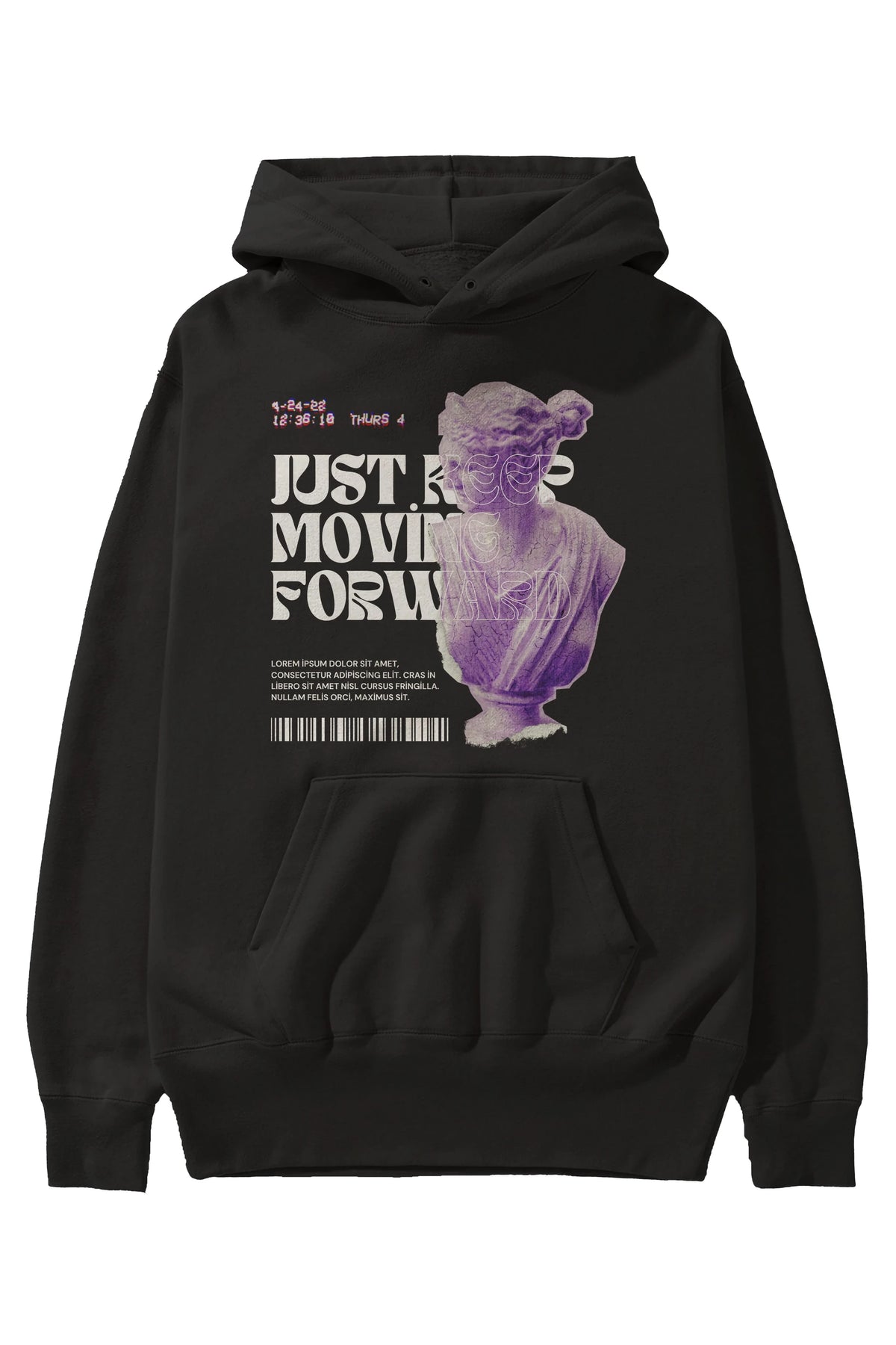 Just Keep Moving Forward Yazılı Ön Baskılı Oversize Hoodie Kapüşonlu Sweatshirt Erkek Kadın Unisex
