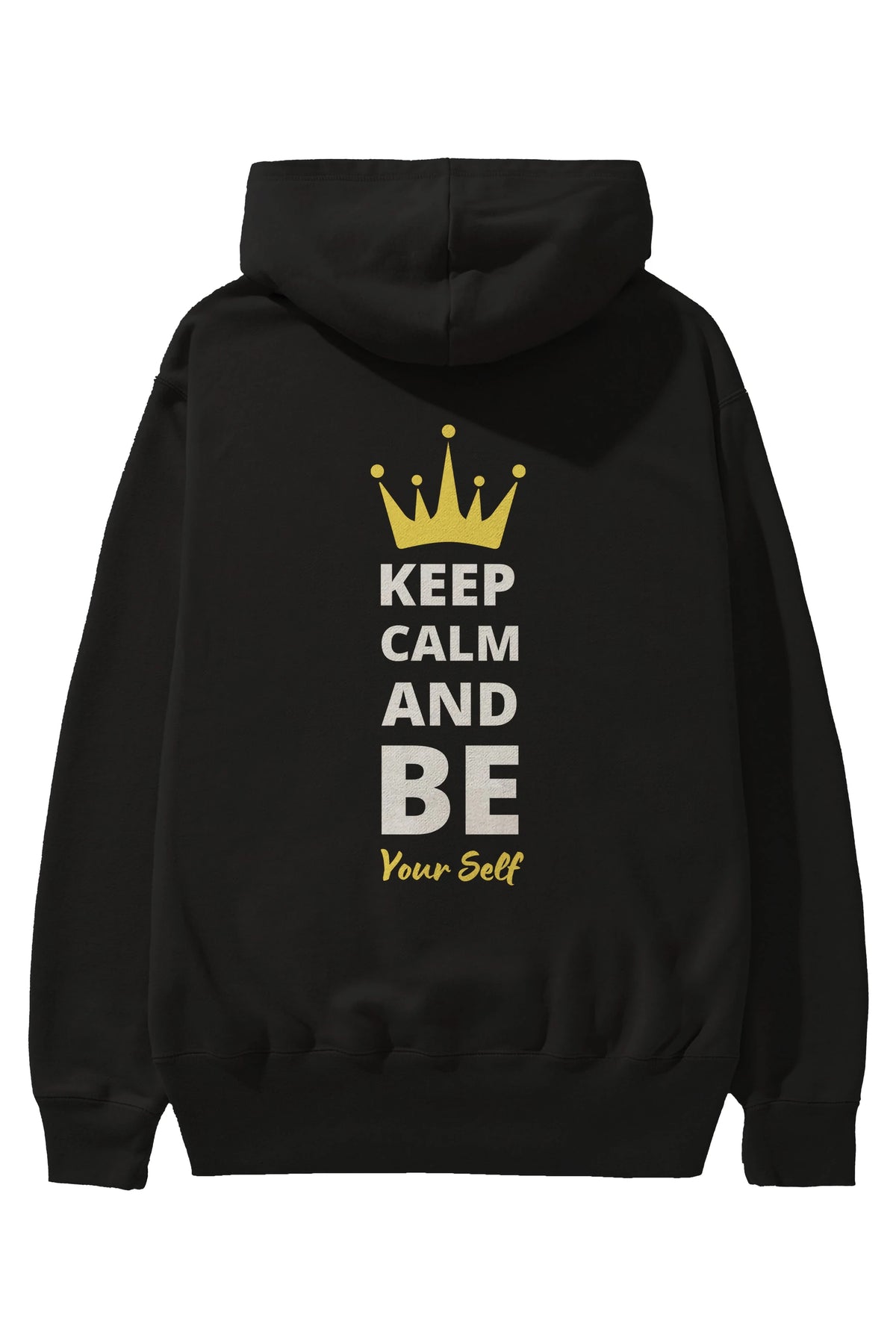 Keep Calm And Be Your Self Yazılı Arka Baskılı Oversize Hoodie Kapüşonlu Sweatshirt Erkek Kadın Unisex