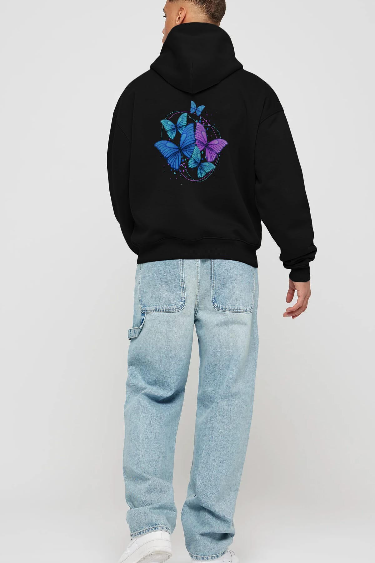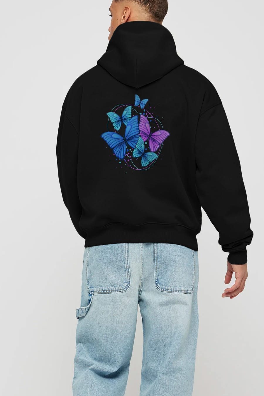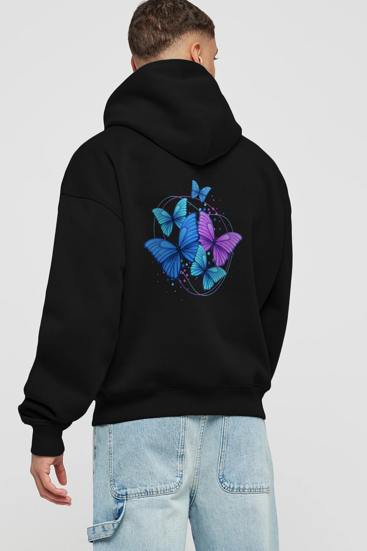 Kelebek Arka Baskılı Oversize Hoodie Kapüşonlu Sweatshirt Erkek Kadın Unisex