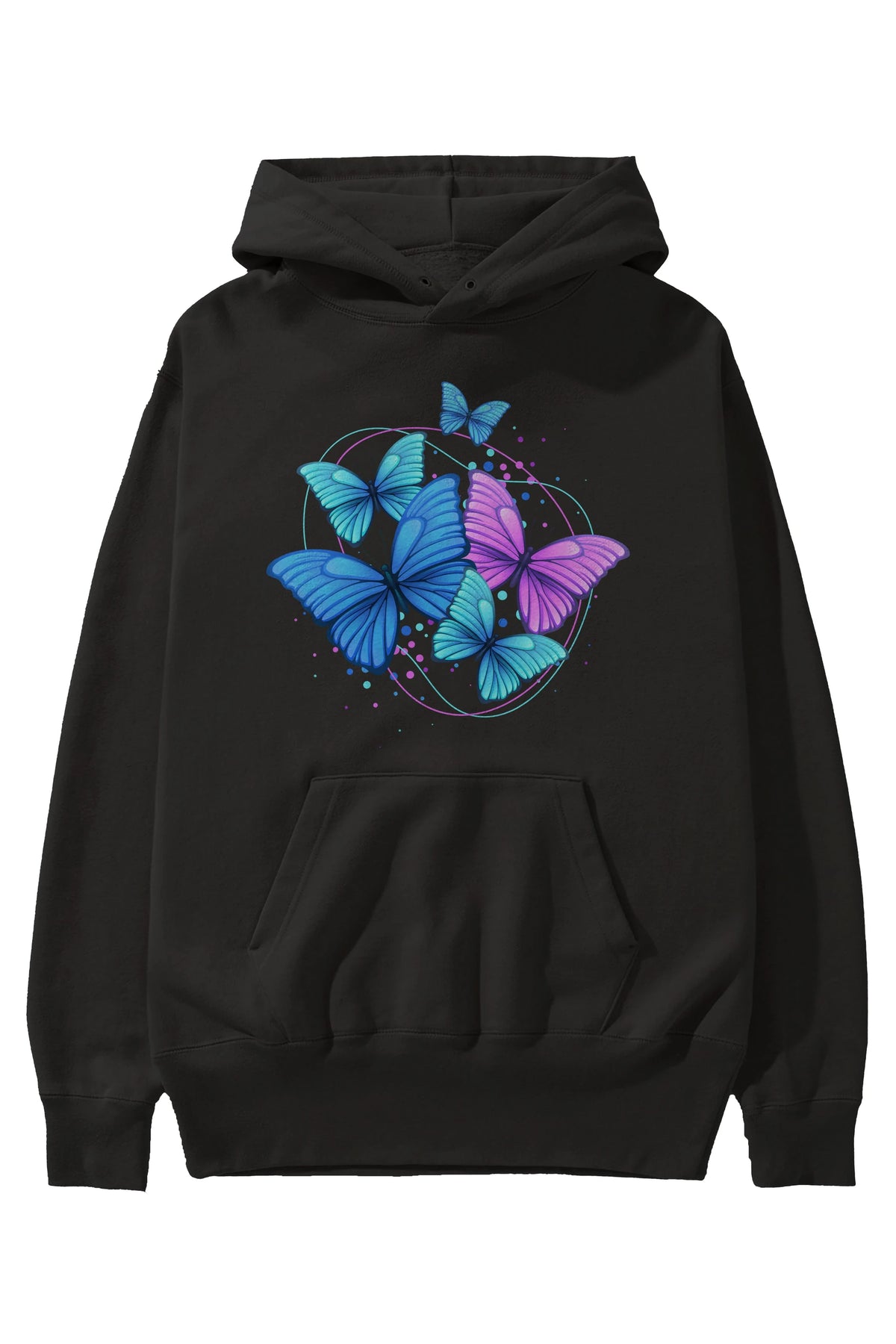 Kelebek Ön Baskılı Oversize Hoodie Kapüşonlu Sweatshirt Erkek Kadın Unisex