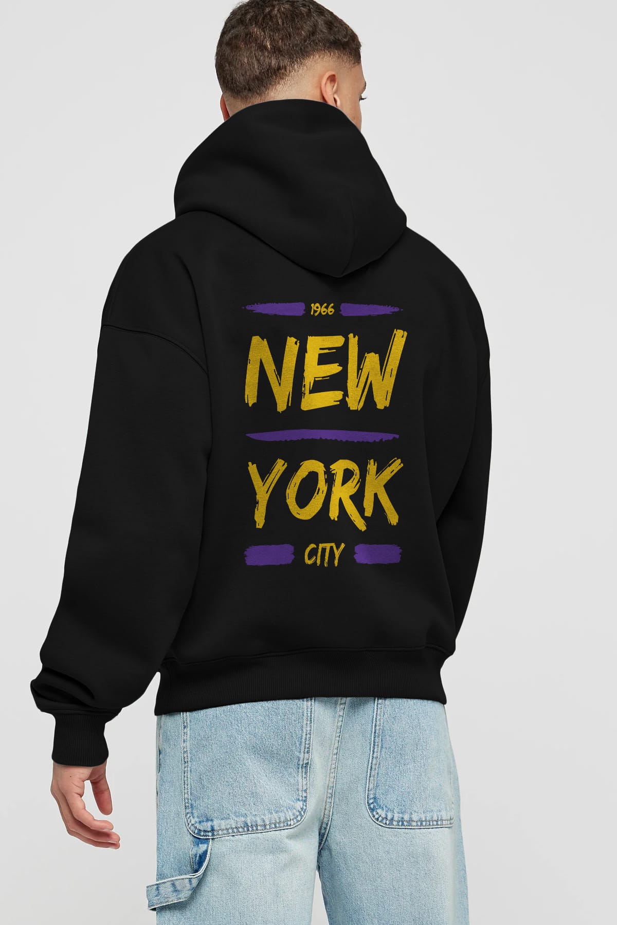 New York City 2 Arka Baskılı Oversize Hoodie Kapüşonlu Sweatshirt Erkek Kadın Unisex