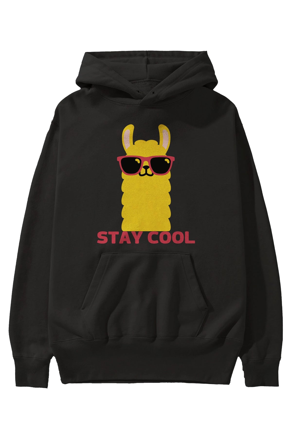 Stay Cool Yazılı Lama Ön Baskılı Oversize Hoodie Kapüşonlu Sweatshirt Erkek Kadın Unisex