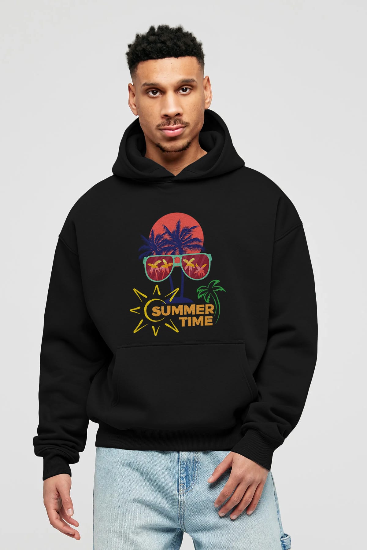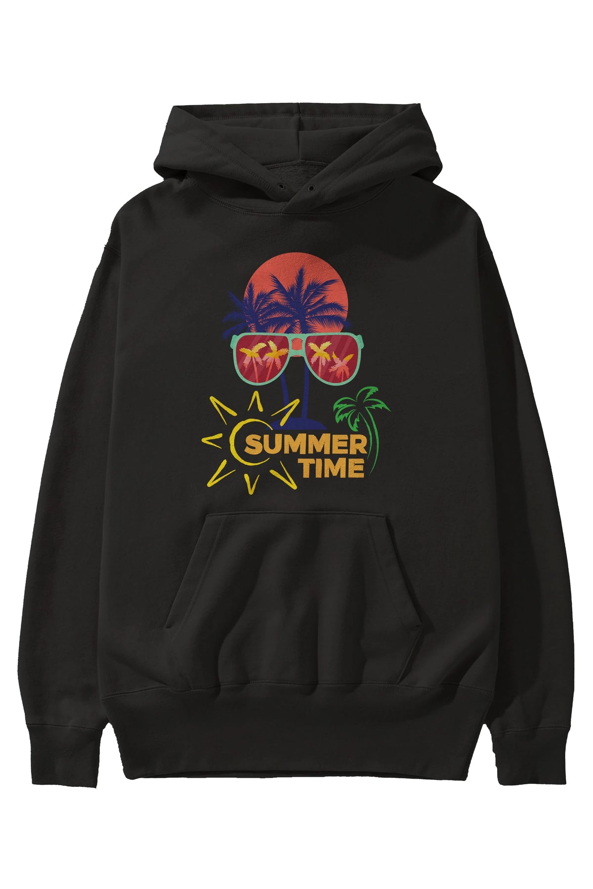 Summer Time Yazılı Ön Baskılı Oversize Hoodie Kapüşonlu Sweatshirt Erkek Kadın Unisex