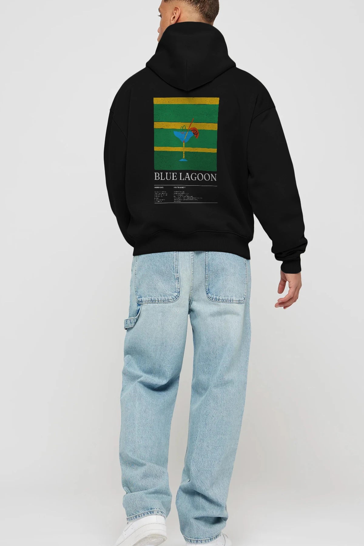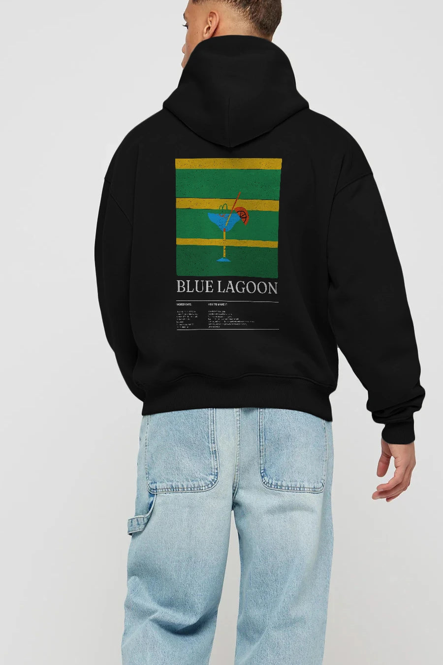 Blue Lagoon Kokteyl Arka Baskılı Hoodie Oversize Kapüşonlu Sweatshirt Erkek Kadın