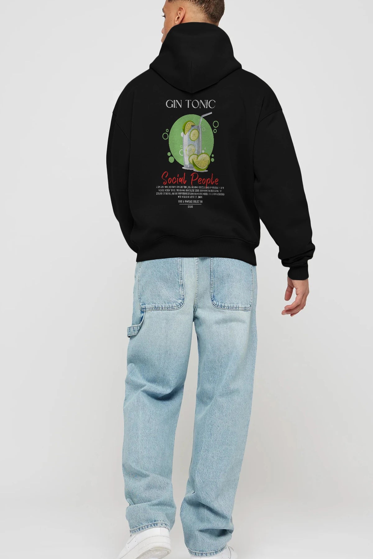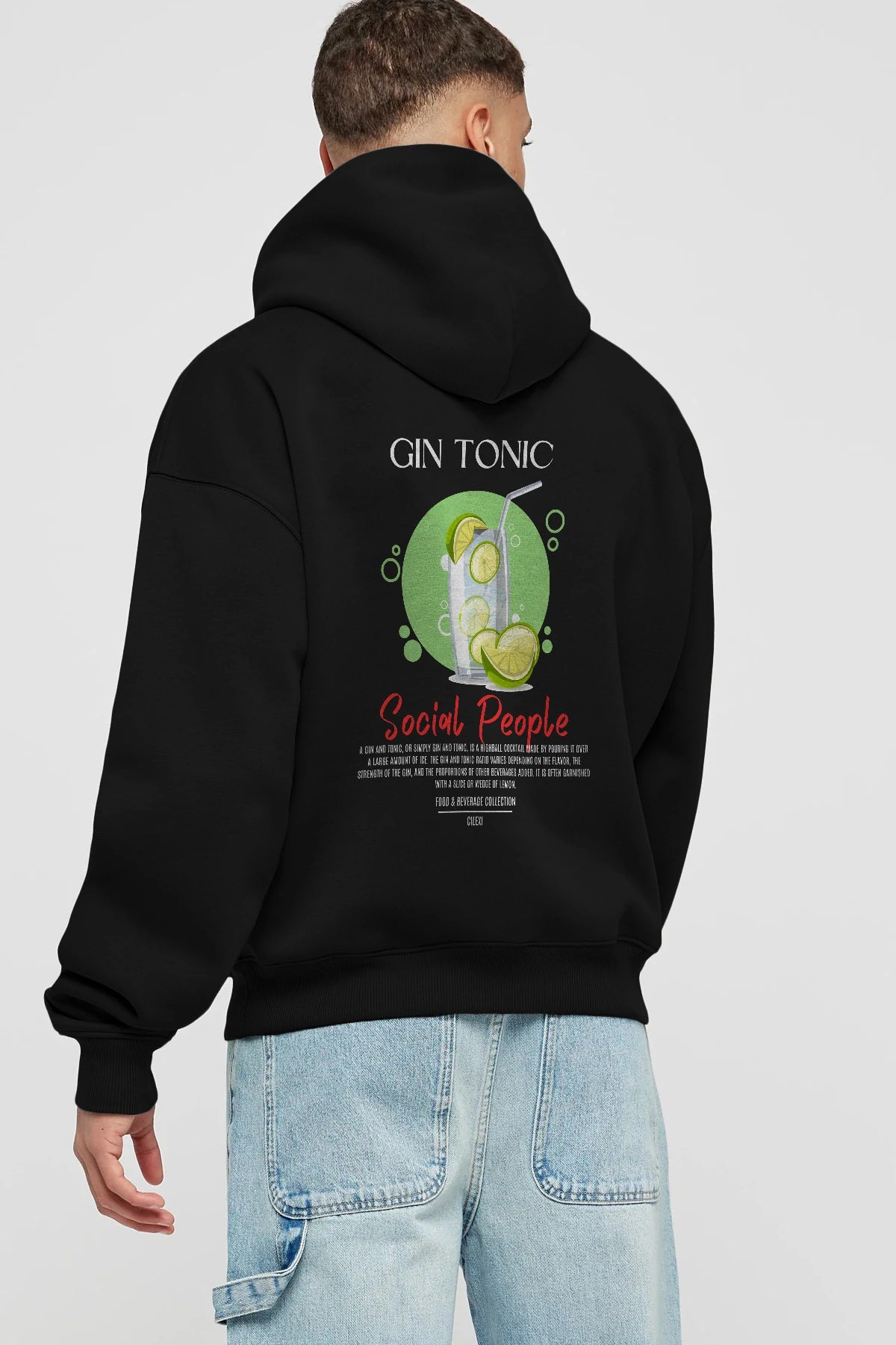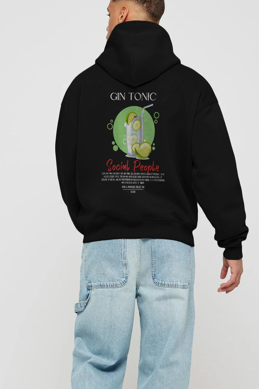 Gin Tonic Kokteyl Arka Baskılı Hoodie Oversize Kapüşonlu Sweatshirt Erkek Kadın