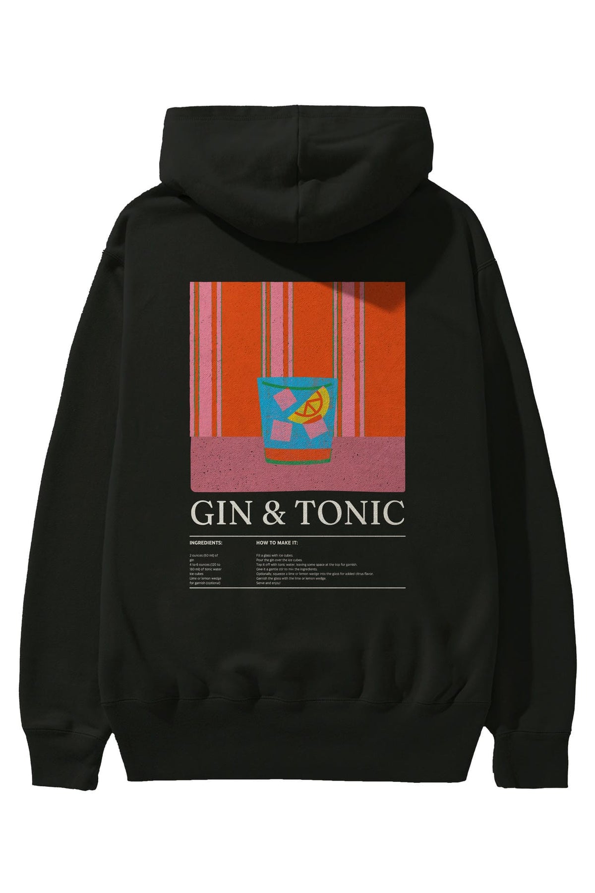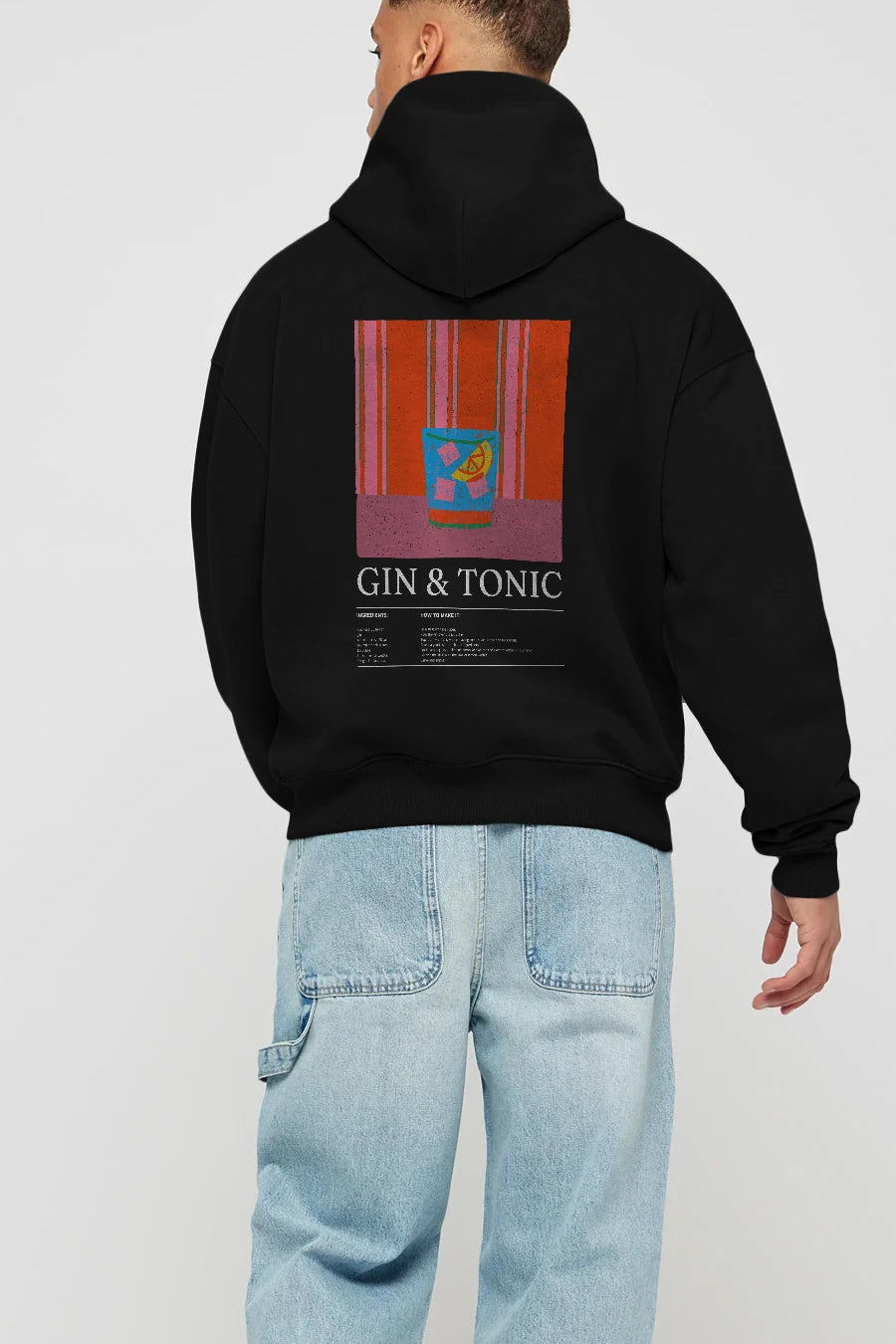 Gin tonik Kokteyl Arka Baskılı Hoodie Oversize Kapüşonlu Sweatshirt Erkek Kadın