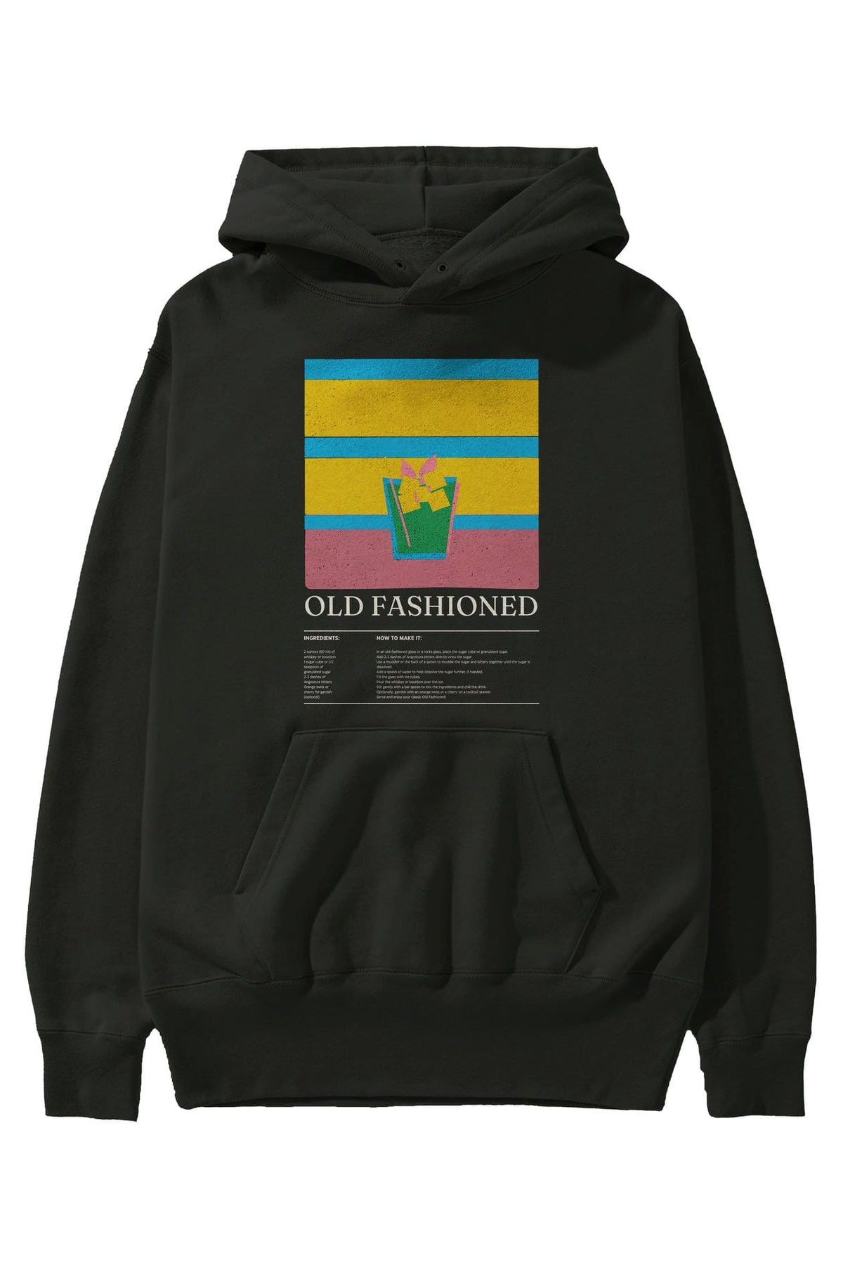 Old Fashioned Kokteyl ön Baskılı Hoodie Oversize Kapüşonlu Sweatshirt Erkek Kadın