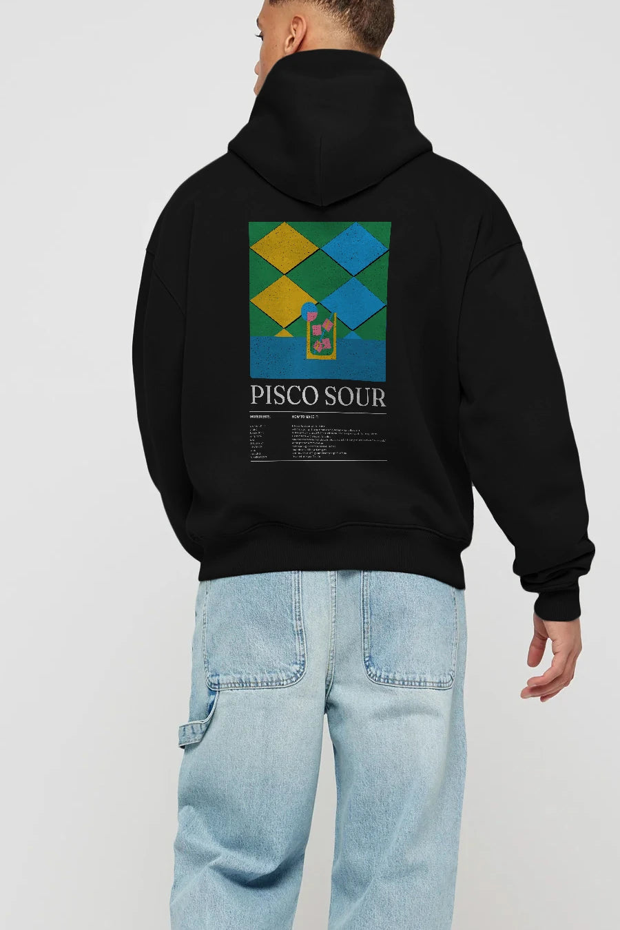 Pisco Sour Kokteyl Arka Baskılı Hoodie Oversize Kapüşonlu Sweatshirt Erkek Kadın