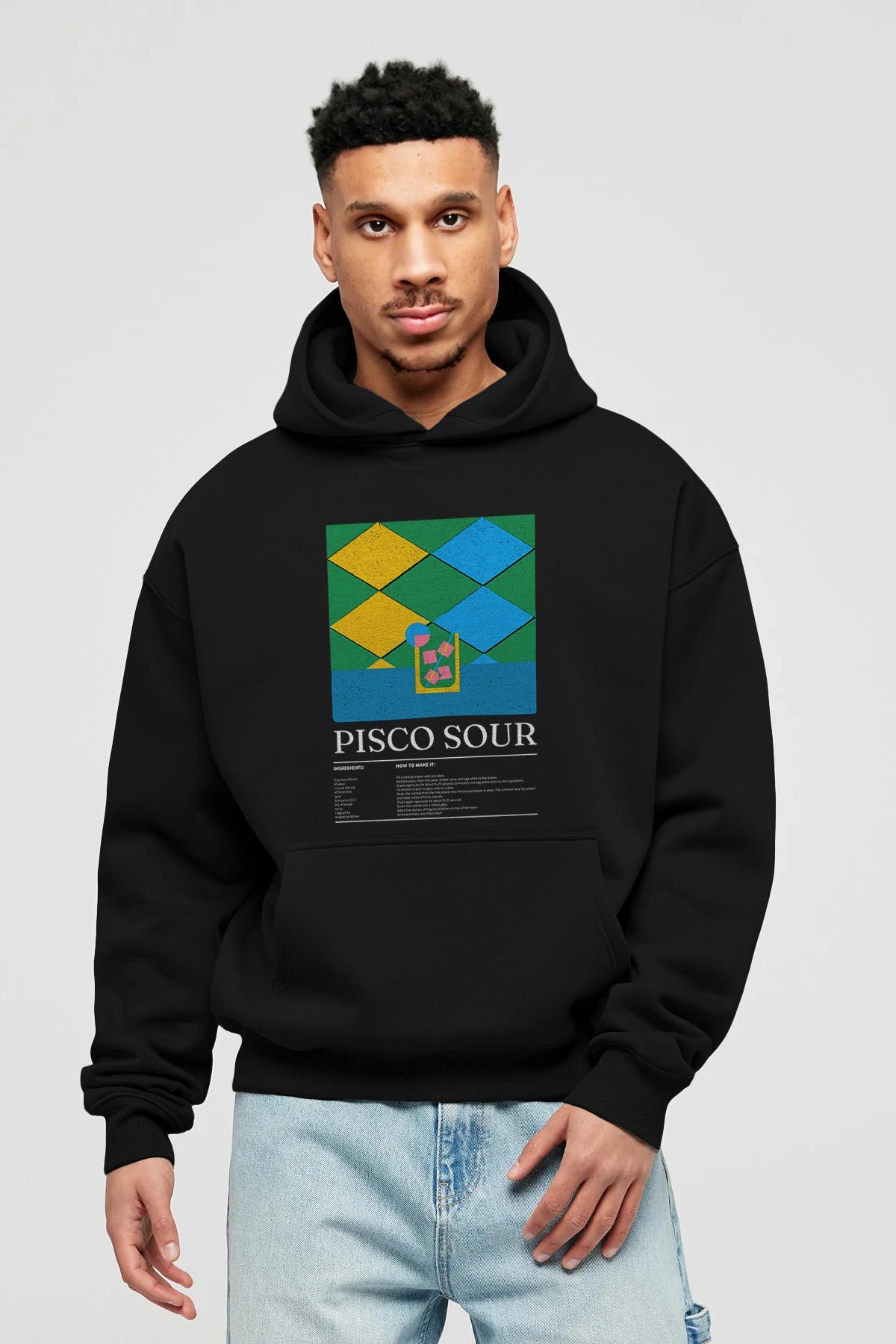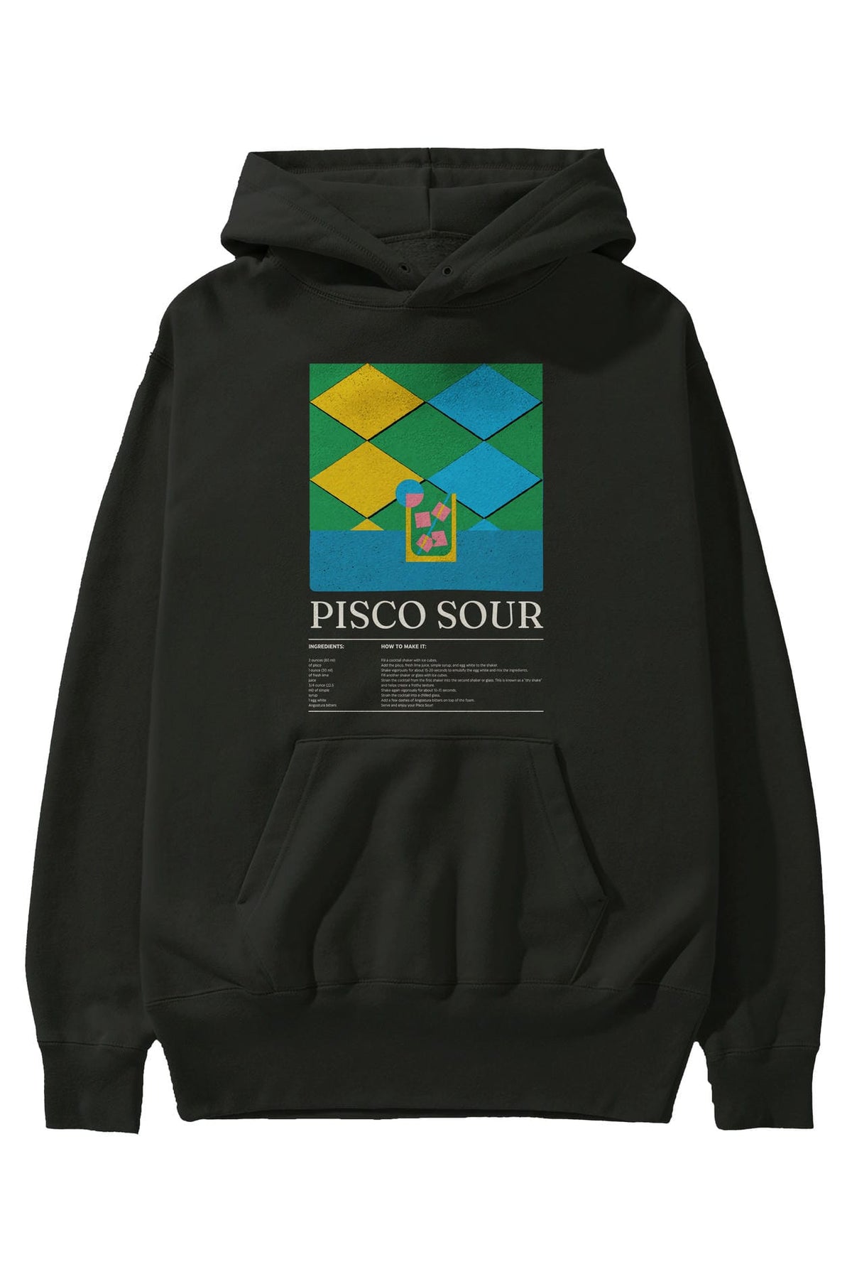Pisco Sour Kokteyl ön Baskılı Hoodie Oversize Kapüşonlu Sweatshirt Erkek Kadın