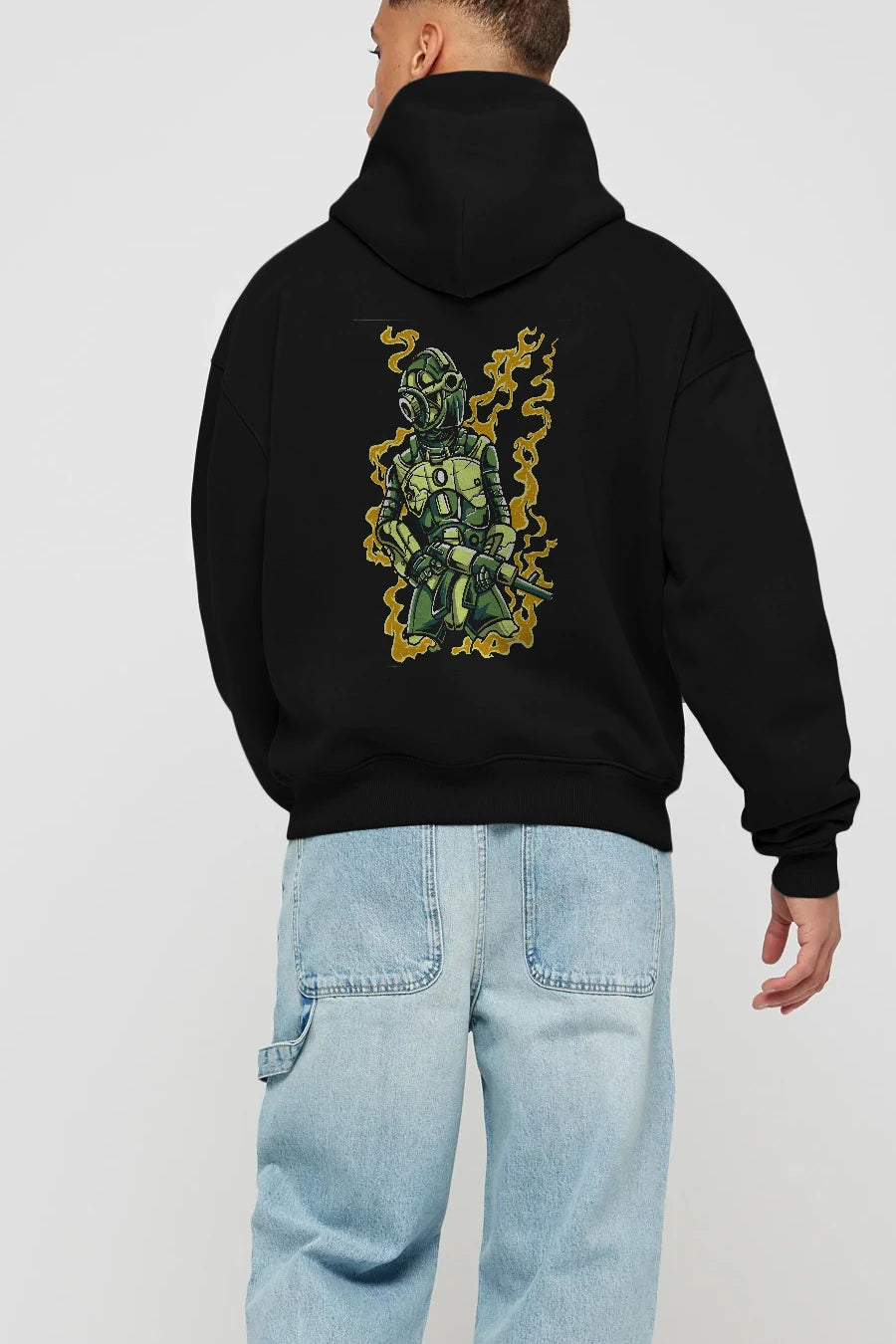Robot Soldier Arka Baskılı Hoodie Oversize Kapüşonlu Sweatshirt Erkek Kadın Unisex