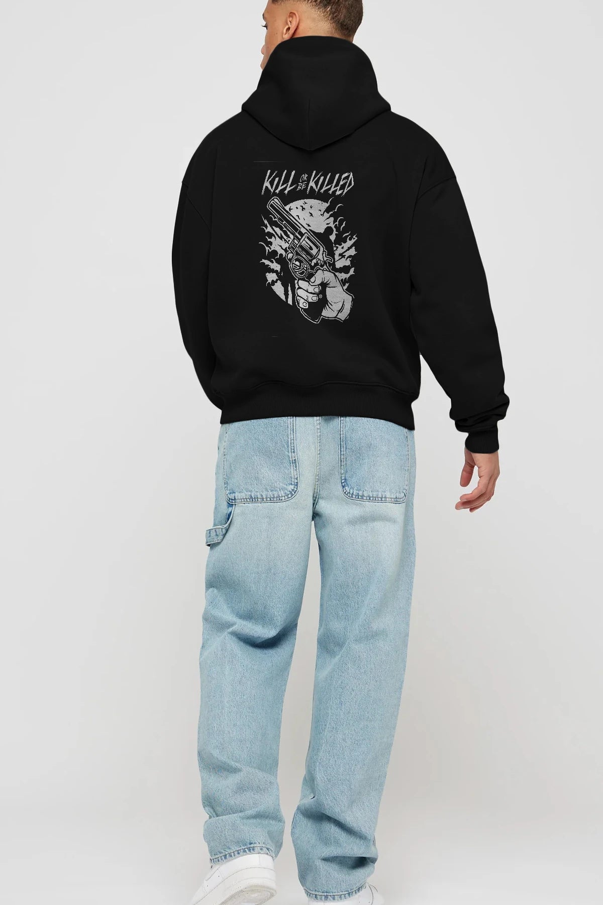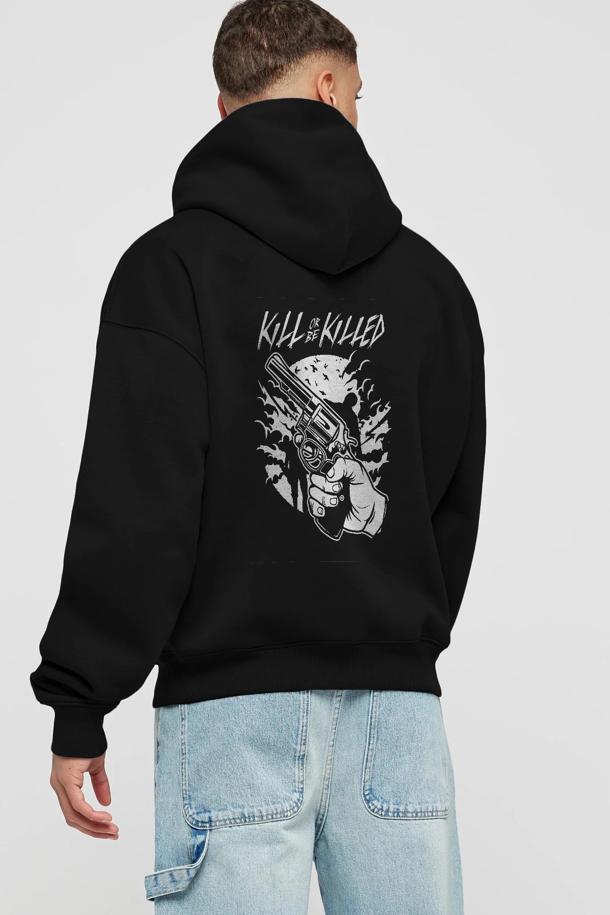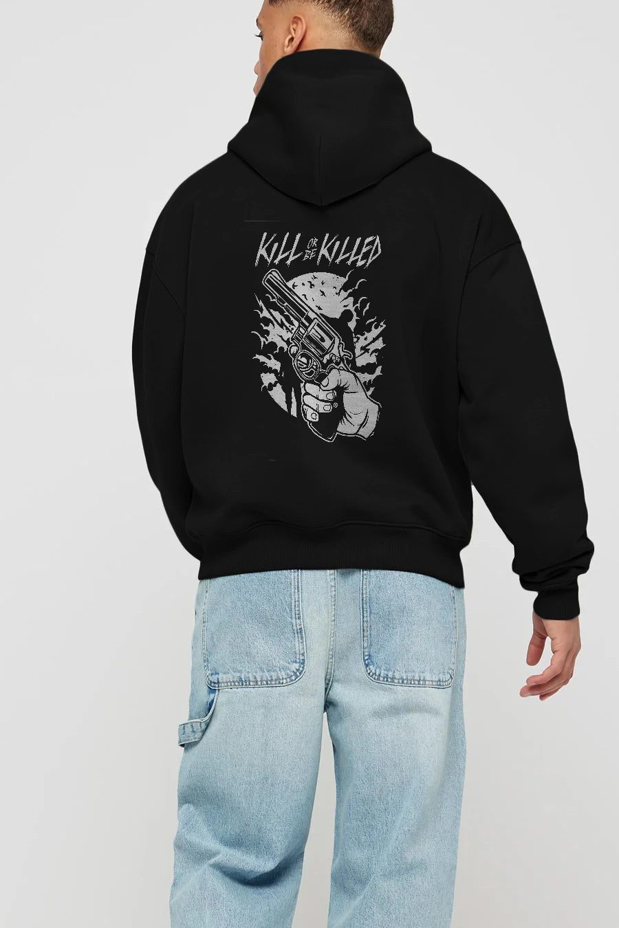 Zombie Shooter Arka Baskılı Hoodie Oversize Kapüşonlu Sweatshirt Erkek Kadın Unisex