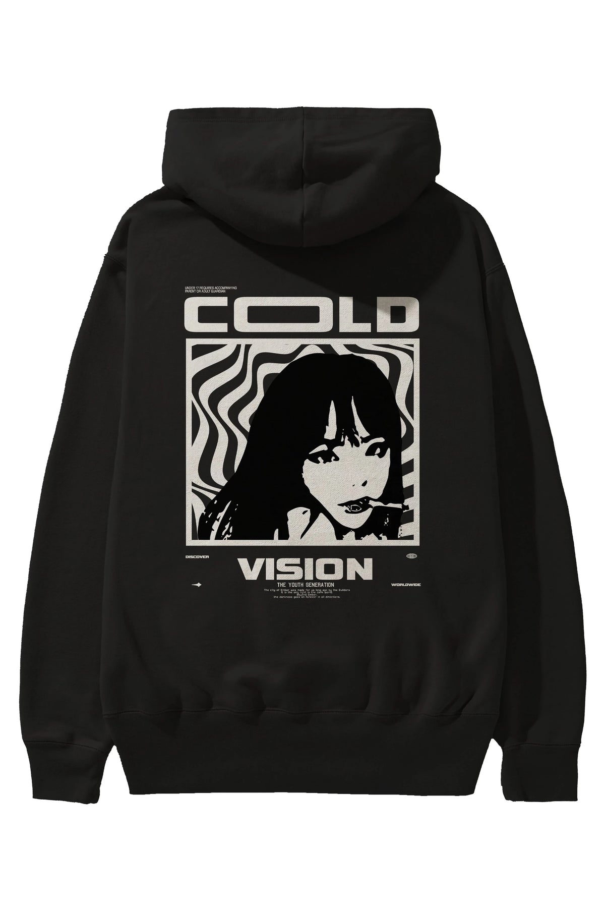 Cold Vision Arka Baskılı Hoodie Oversize Kapüşonlu Sweatshirt Erkek Kadın Unisex