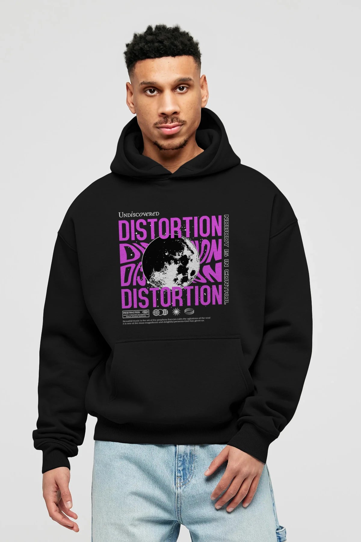 Distortion Ön Baskılı Hoodie Oversize Kapüşonlu Sweatshirt Erkek Kadın Unisex