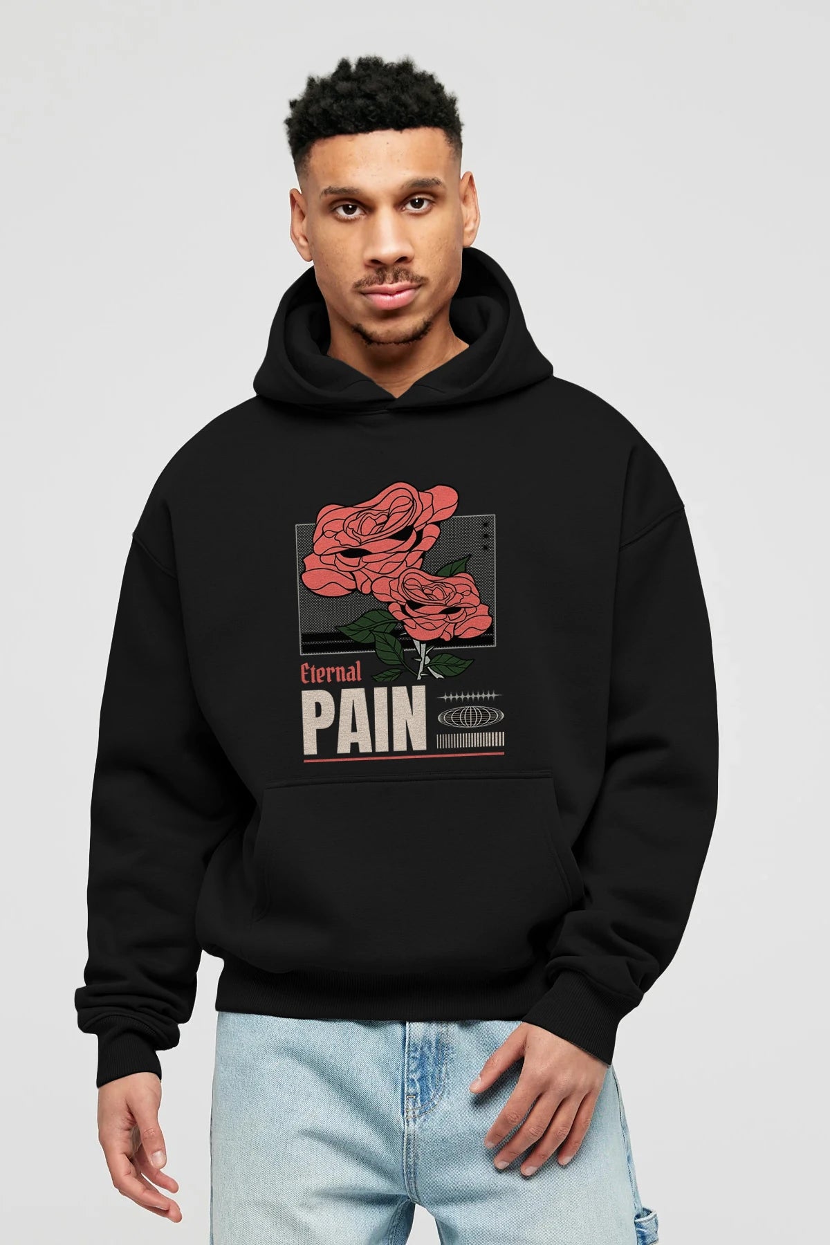 Eternal Pain Ön Baskılı Hoodie Oversize Kapüşonlu Sweatshirt Erkek Kadın Unisex