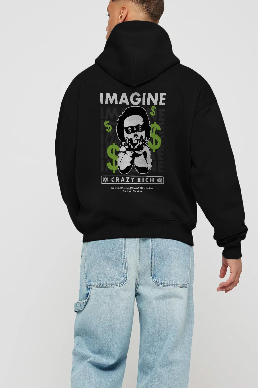 Imagine Crazy Rich Arka Baskılı Hoodie Oversize Kapüşonlu Sweatshirt Erkek Kadın Unisex