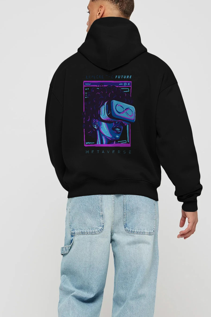 Metaverse Arka Baskılı Hoodie Oversize Kapüşonlu Sweatshirt Erkek Kadın Unisex
