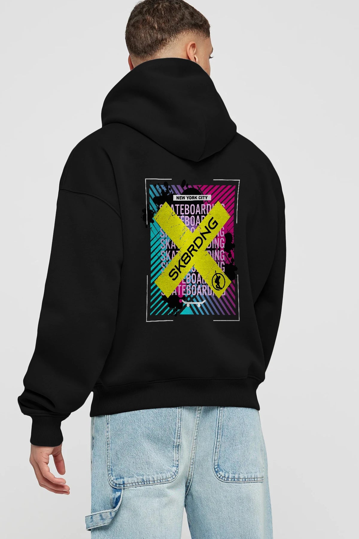 Skatebording Arka Baskılı Hoodie Oversize Kapüşonlu Sweatshirt Erkek Kadın Unisex