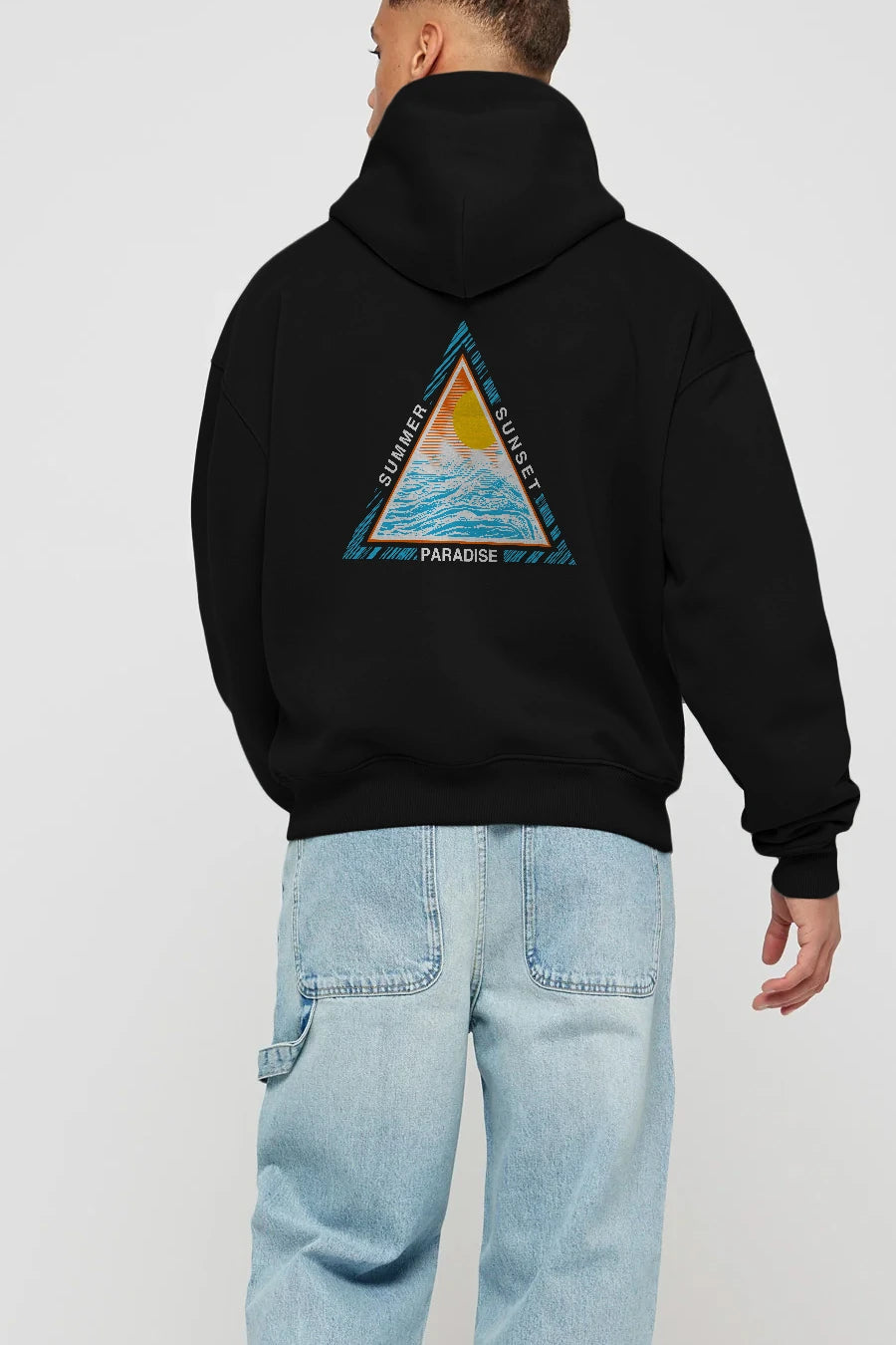 Summer Sunset Paradise Arka Baskılı Hoodie Oversize Kapüşonlu Sweatshirt Erkek Kadın Unisex