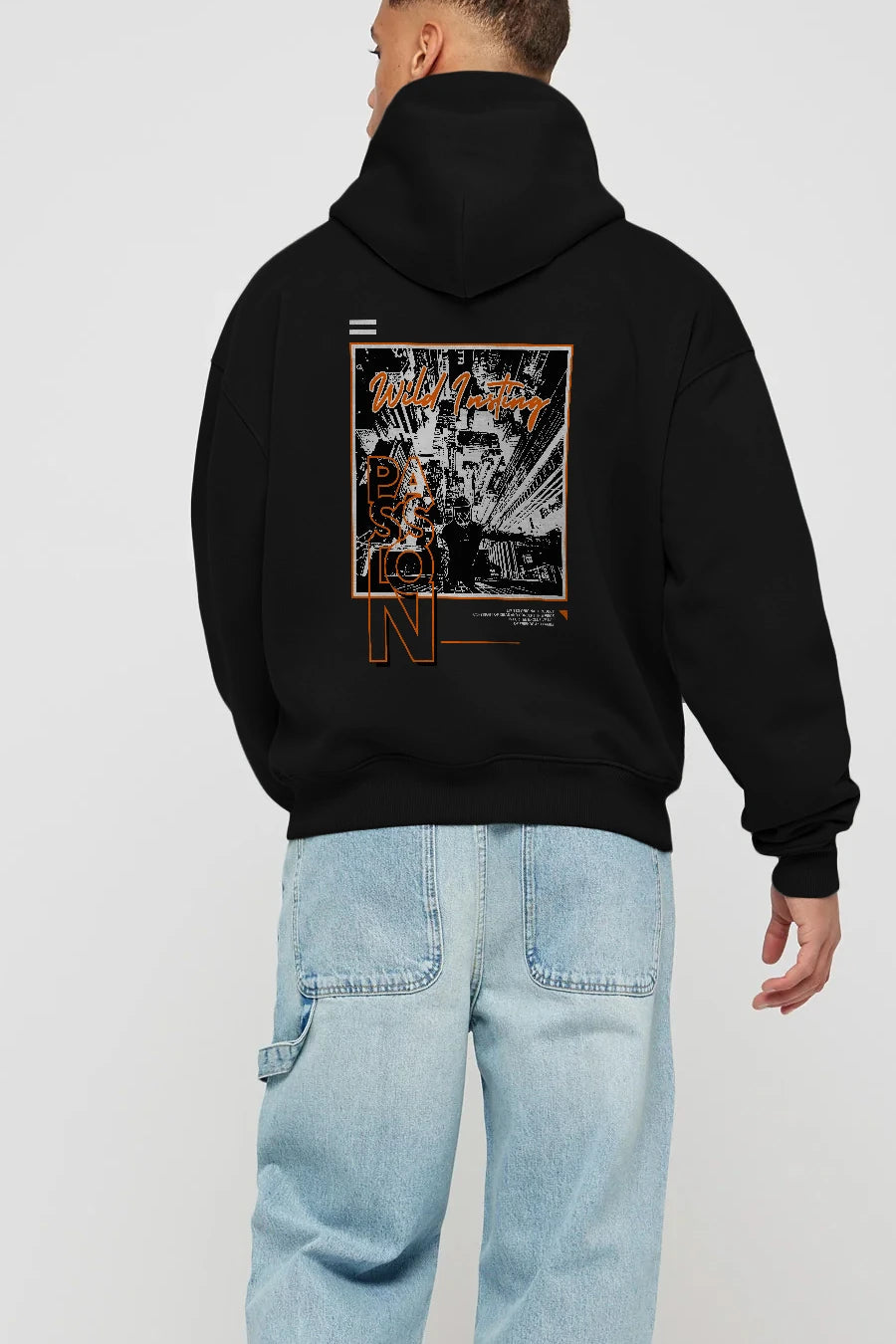 Wild Passion Arka Baskılı Hoodie Oversize Kapüşonlu Sweatshirt Erkek Kadın Unisex