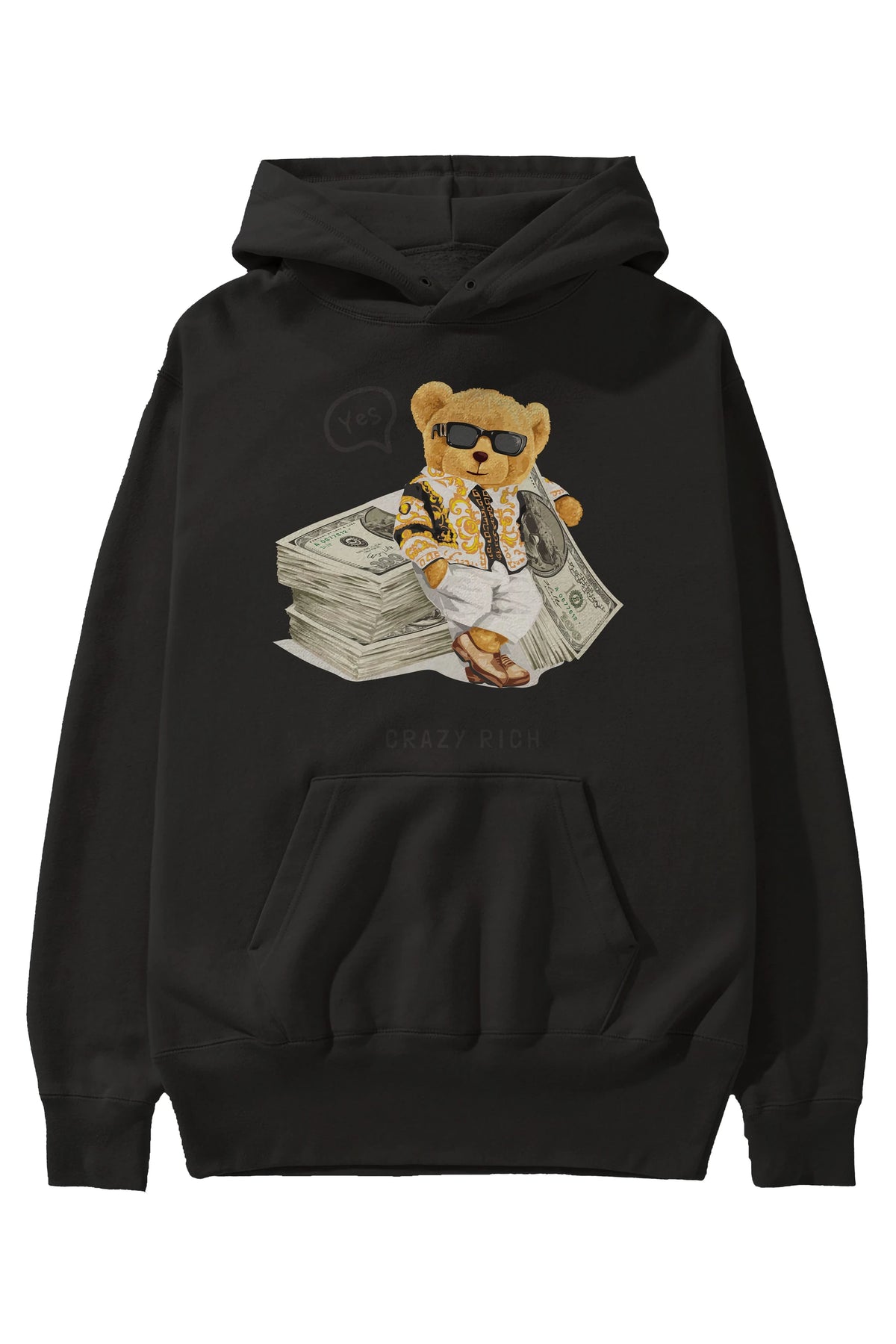 Teddy Bear Crazy Rich Ön Baskılı Hoodie Oversize Kapüşonlu Sweatshirt Erkek Kadın Unisex