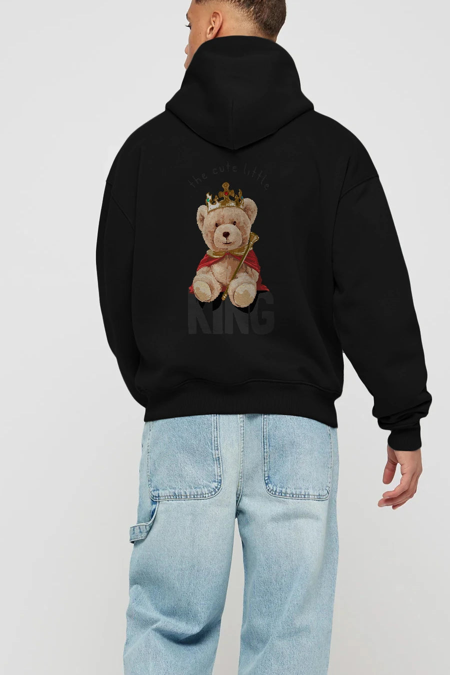 Teddy Bear King Arka Baskılı Hoodie Oversize Kapüşonlu Sweatshirt Erkek Kadın Unisex