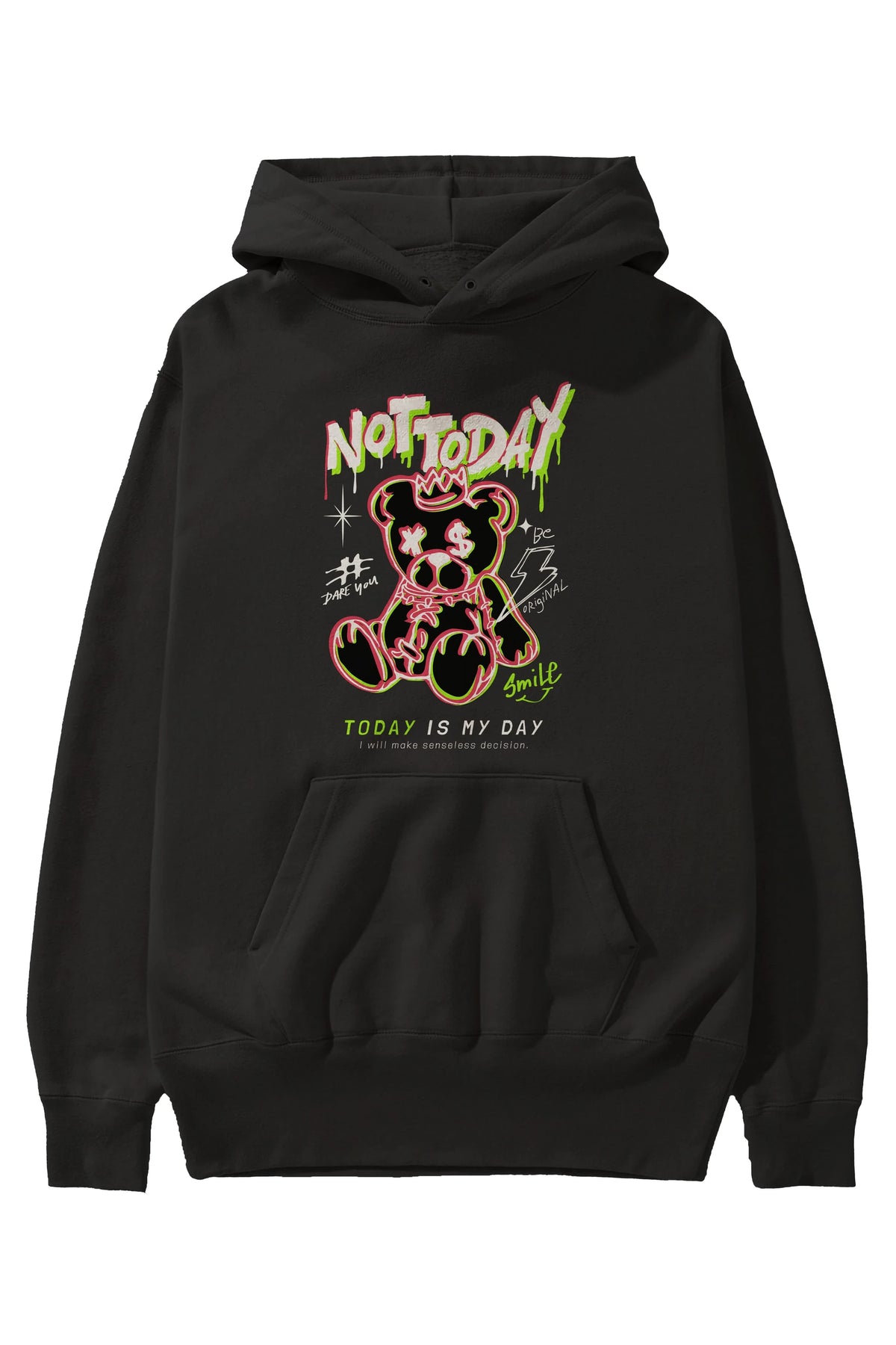 Teddy Bear Not Today Ön Baskılı Hoodie Oversize Kapüşonlu Sweatshirt Erkek Kadın Unisex
