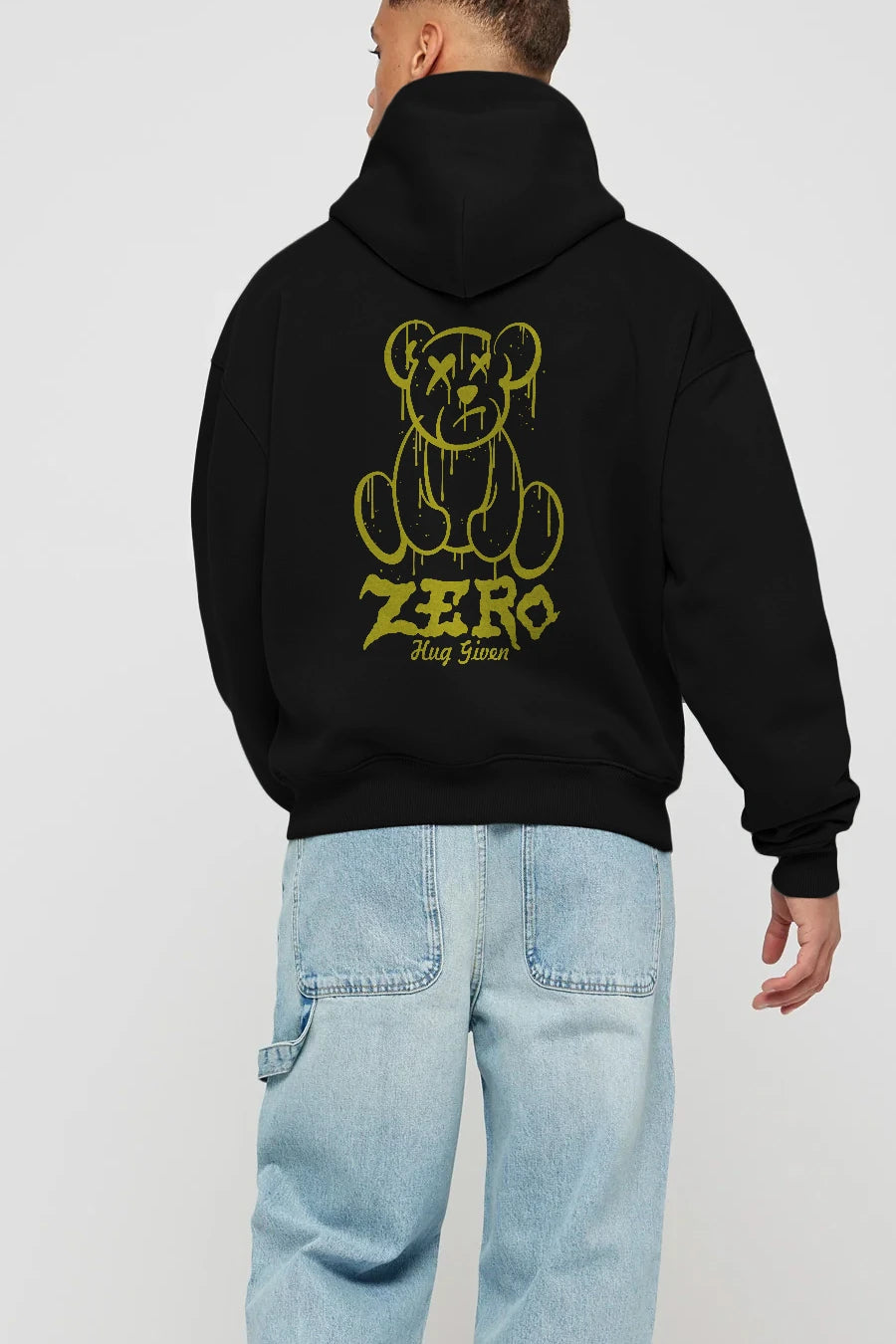 Zero Hug Given Bear Arka Baskılı Hoodie Oversize Kapüşonlu Sweatshirt Erkek Kadın Unisex