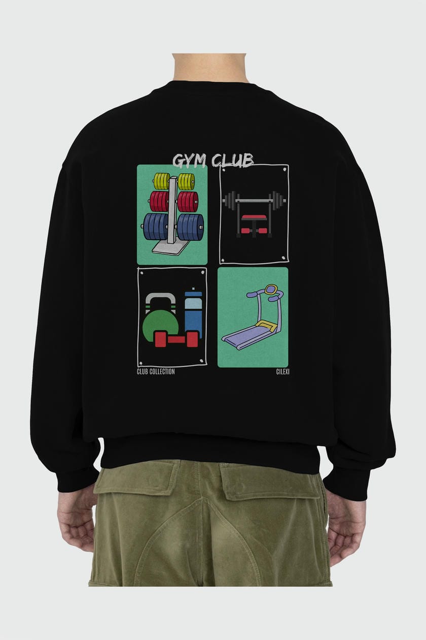 Gym Club Arka Baskılı Oversize Sweatshirt Erkek Kadın Unisex