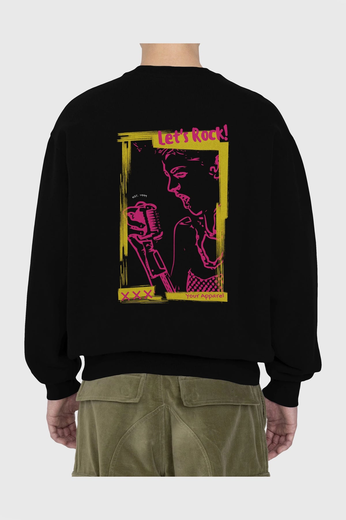 Let's Rock Yazılı Arka Baskılı Oversize Sweatshirt Erkek Kadın Unisex