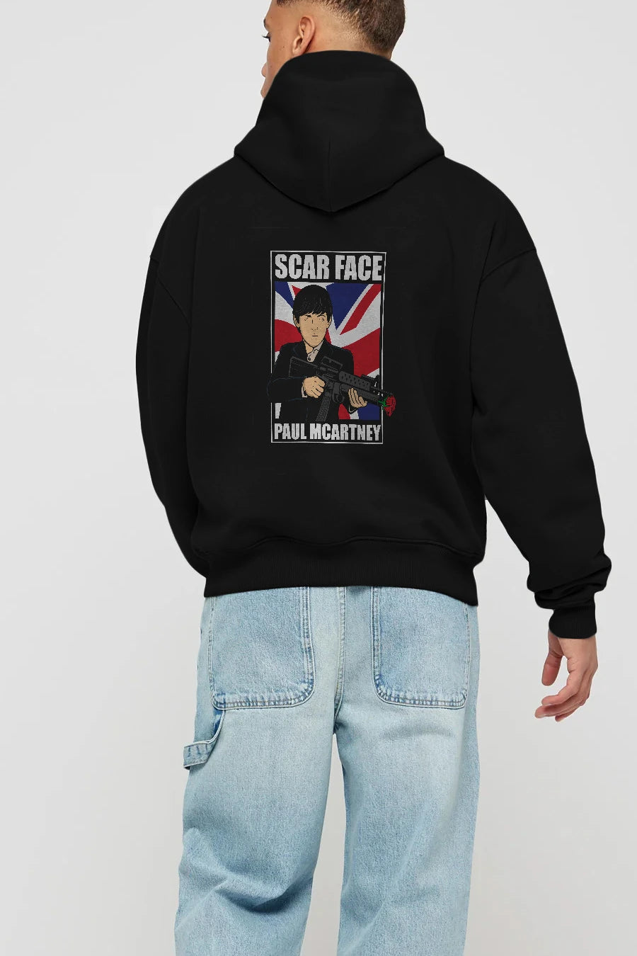 Paul Mccartney Scar Face Arka Baskılı Hoodie Oversize Kapüşonlu Sweatshirt Erkek Kadın Unisex