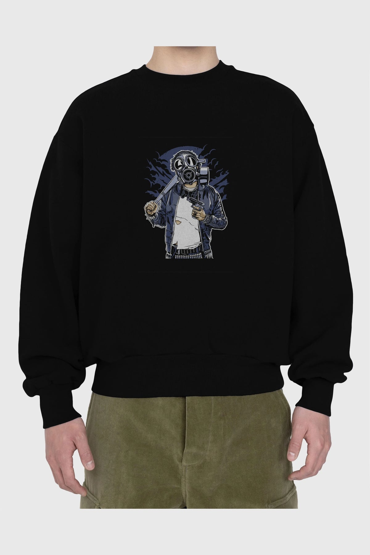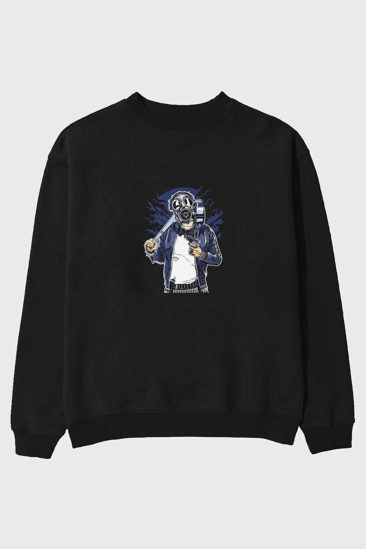 Gasmask Bastard Ön Baskılı Oversize Sweatshirt Erkek Kadın Unisex