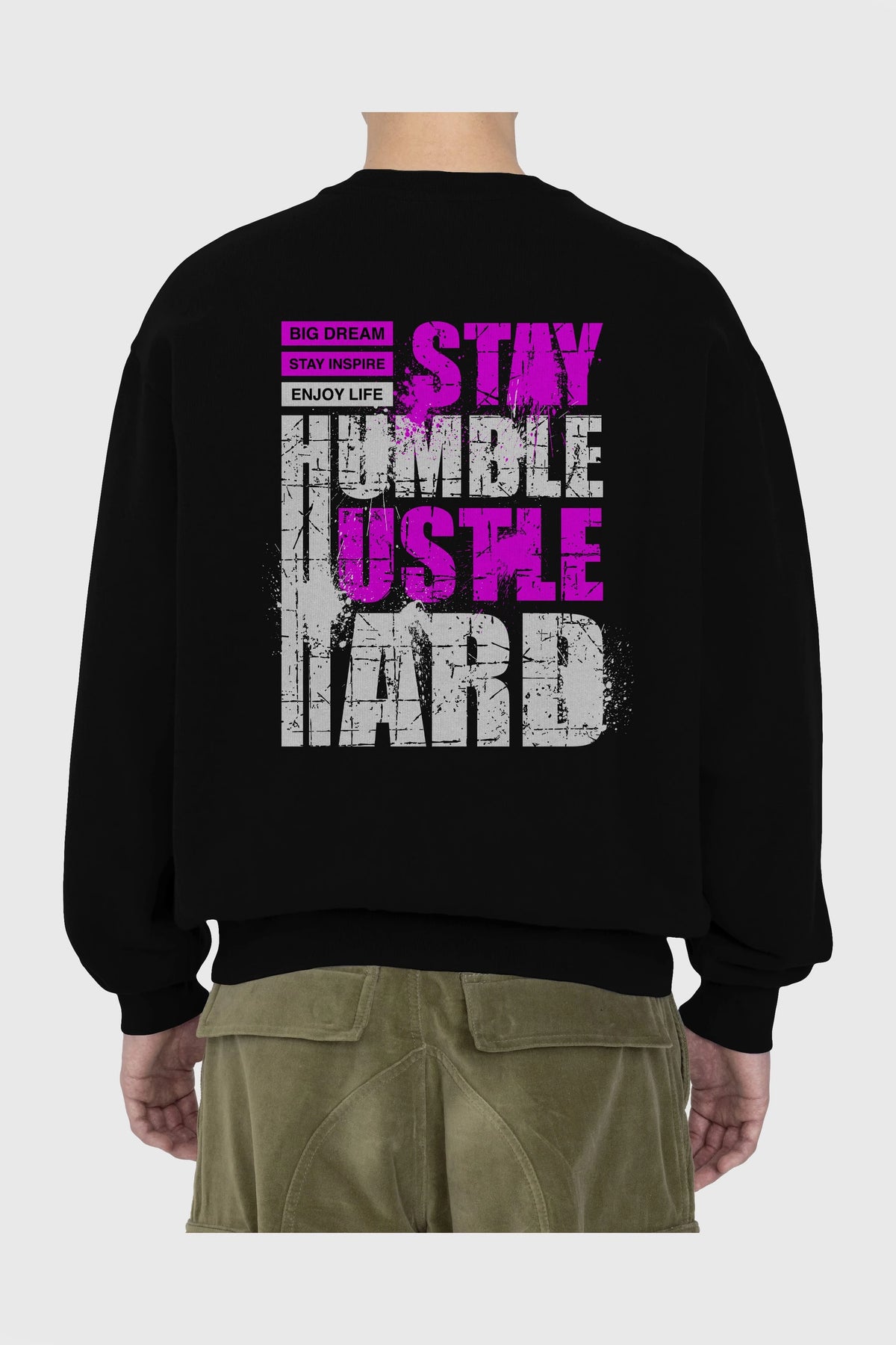 Stay Hustle Arka Baskılı Oversize Sweatshirt Erkek Kadın Unisex