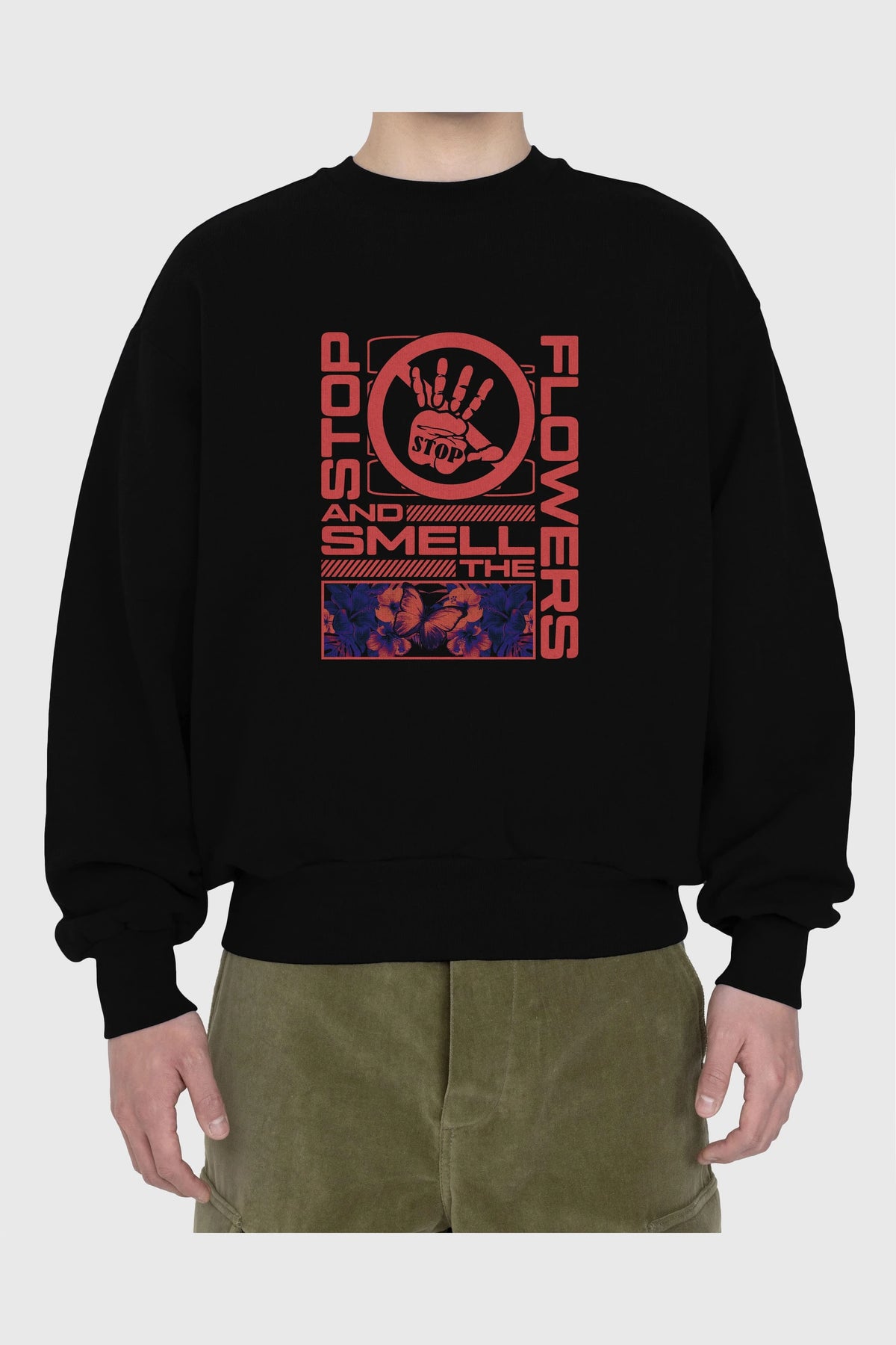 Stop and smell the flowers Ön Baskılı Oversize Sweatshirt Erkek Kadın Unisex