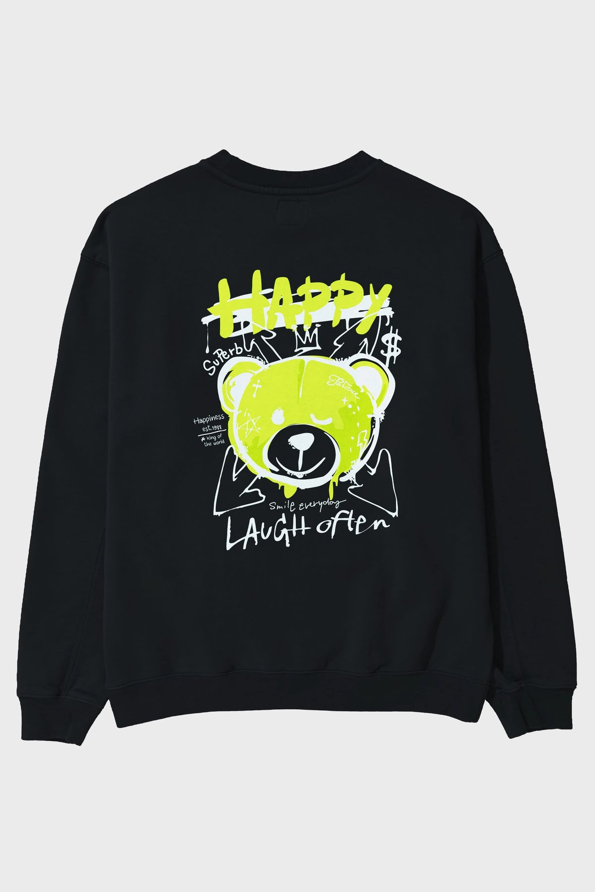 Happy Bear Arka Baskılı Oversize Sweatshirt Erkek Kadın Unisex