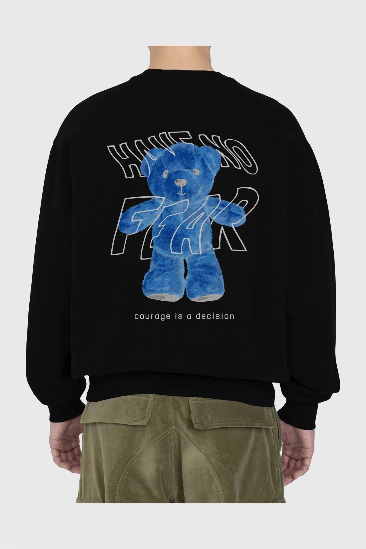 Have no Fear Bear Arka Baskılı Oversize Sweatshirt Erkek Kadın Unisex