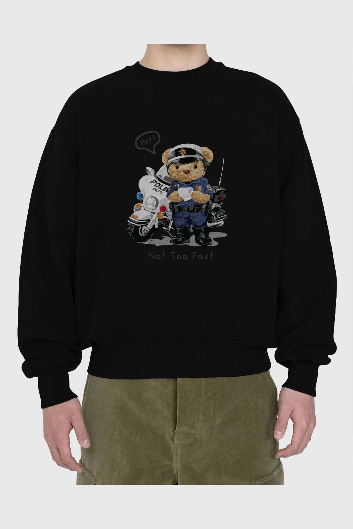 Teddy Bear Not Too Fast Ön Baskılı Oversize Sweatshirt Erkek Kadın Unisex