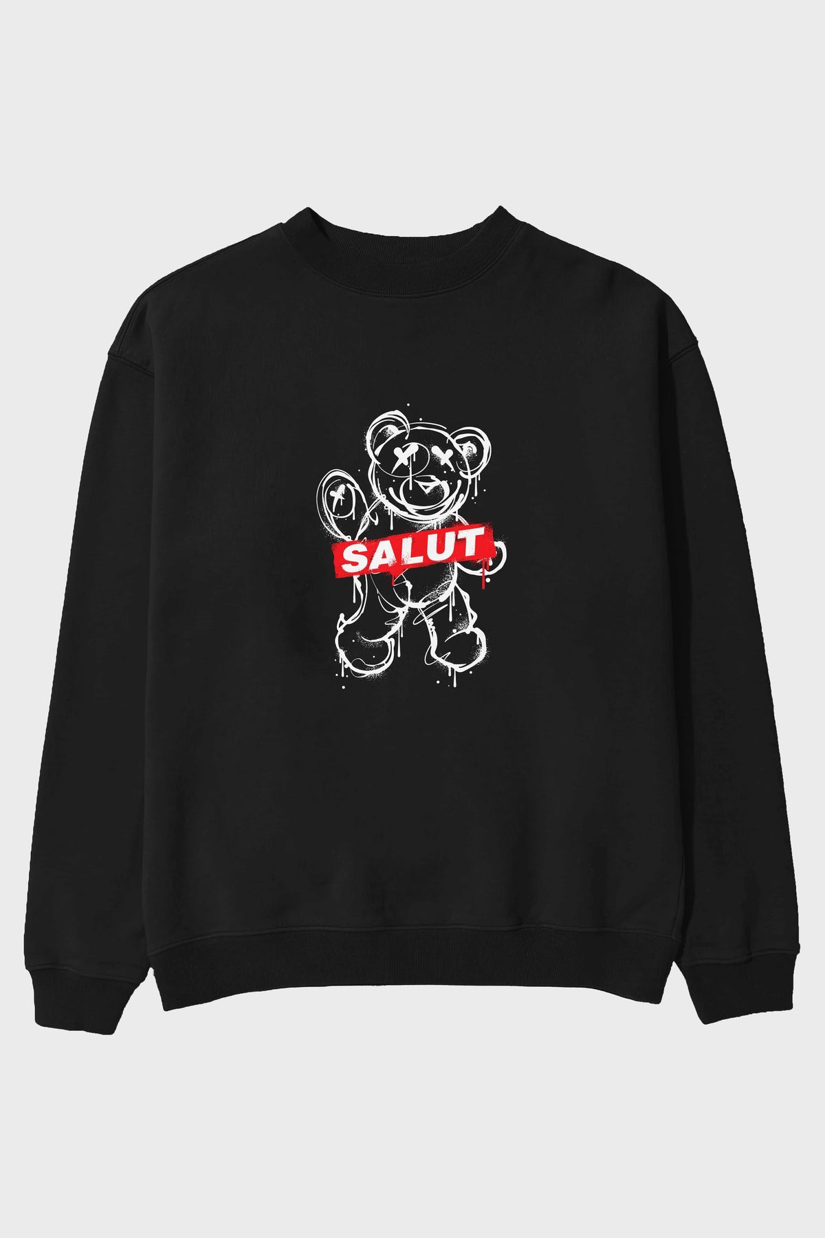 Teddy Bear Salut Ön Baskılı Oversize Sweatshirt Erkek Kadın Unisex