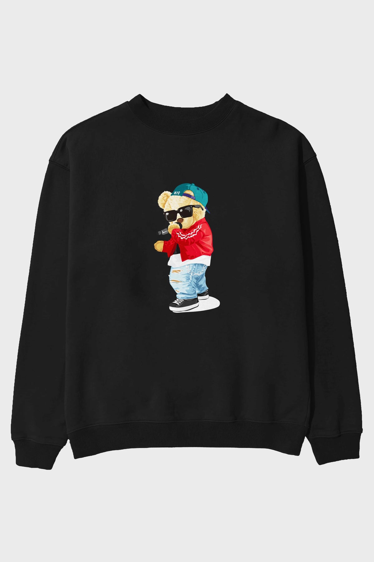 Teddy Bear Şarkıcı Ön Baskılı Oversize Sweatshirt Erkek Kadın Unisex
