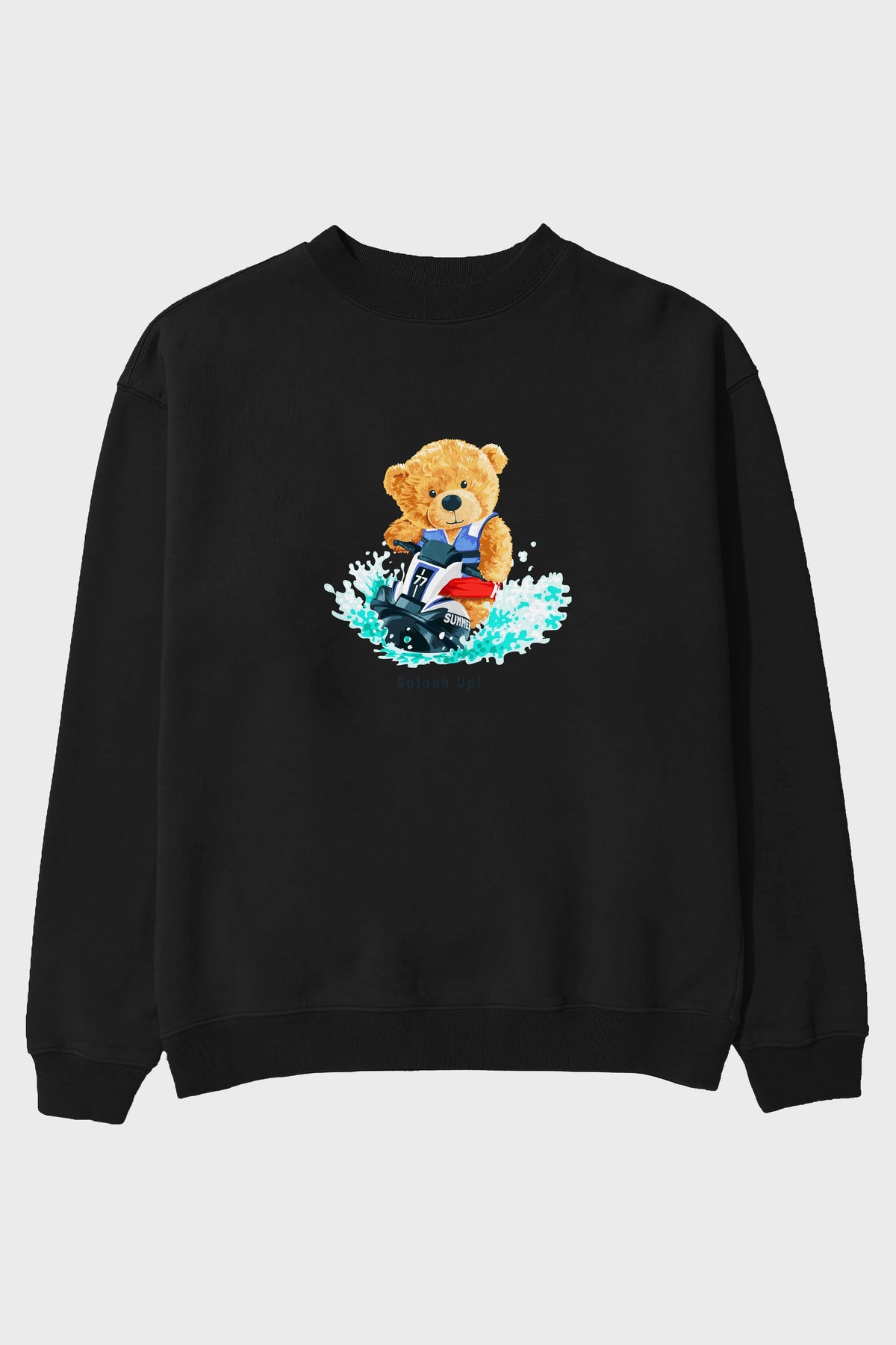 Teddy Bear Splash Up Ön Baskılı Oversize Sweatshirt Erkek Kadın Unisex