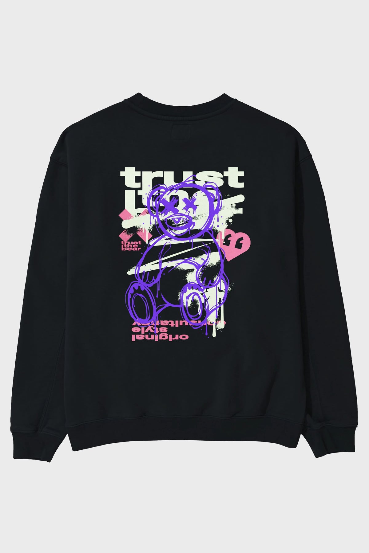 Trust The Bear 3 Arka Baskılı Oversize Sweatshirt Erkek Kadın Unisex