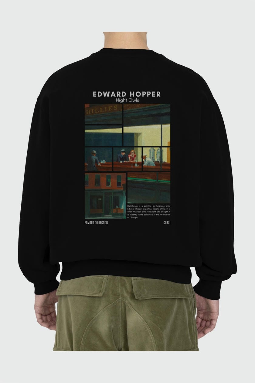 Edward Hopper Night Owls Arka Baskılı Oversize Sweatshirt Erkek Kadın Unisex
